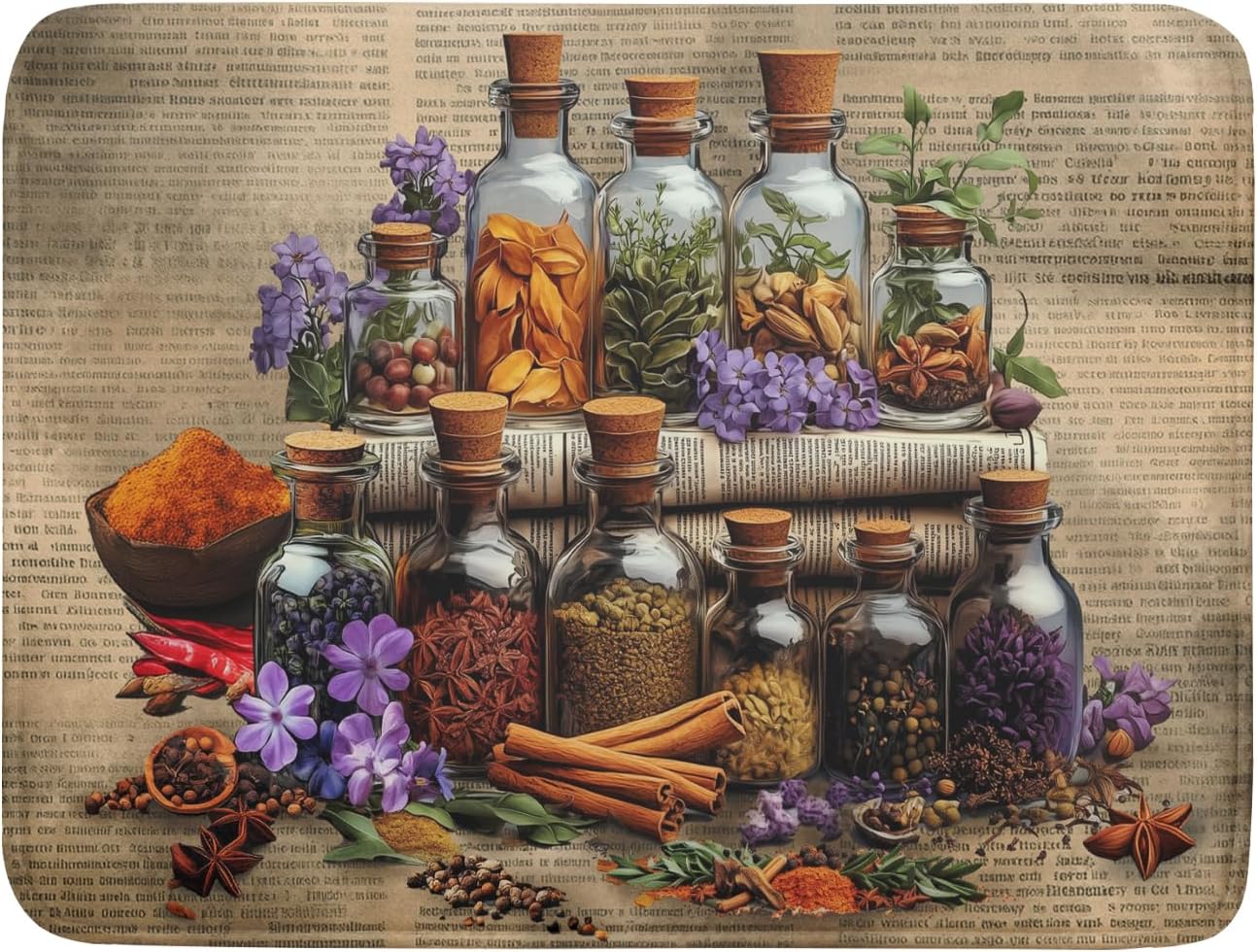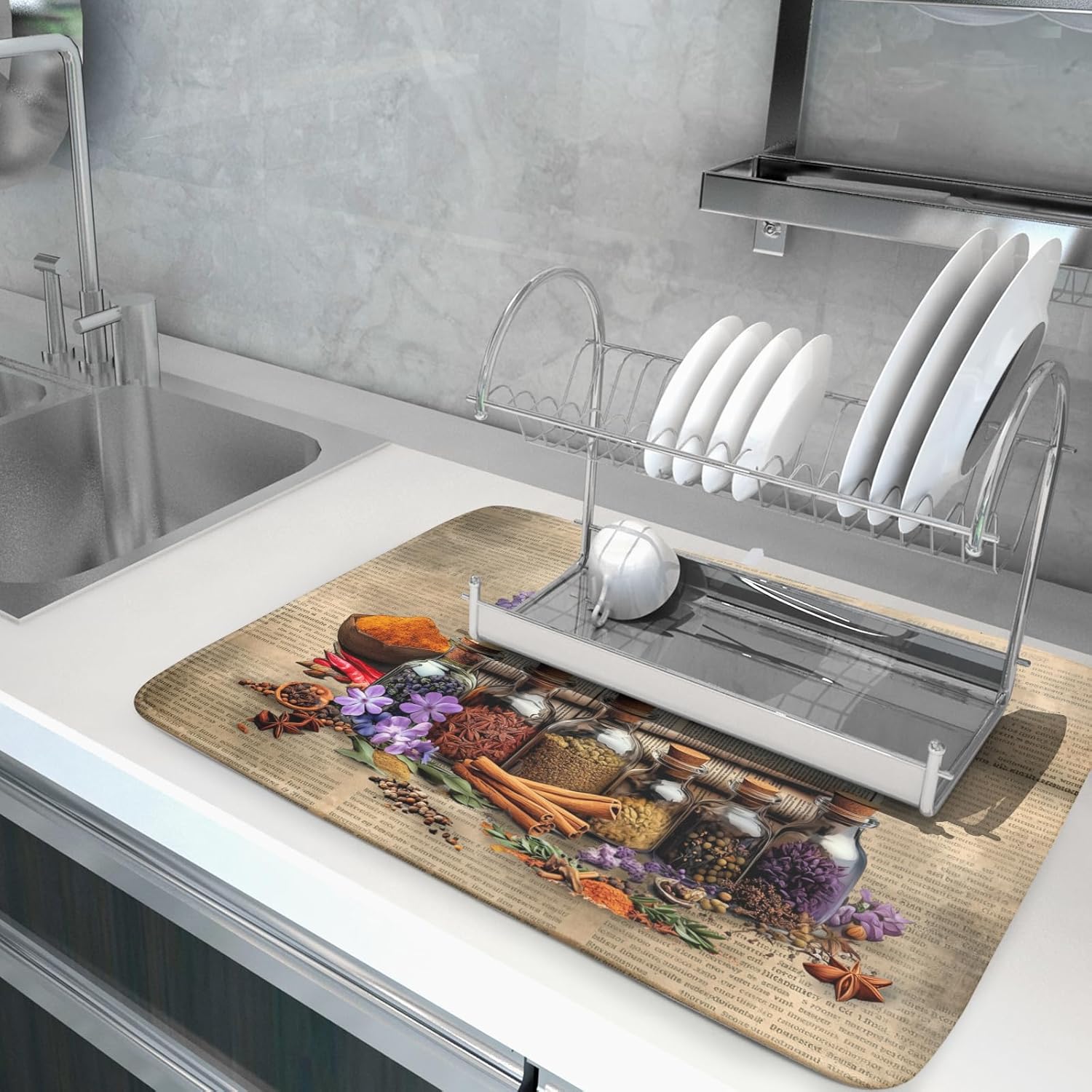 Herbs Kitchen Dish Drying Mat - Spice Bottle Absorbent Microfiber Dish Rack Mat Drying Pad 18 X 24 In