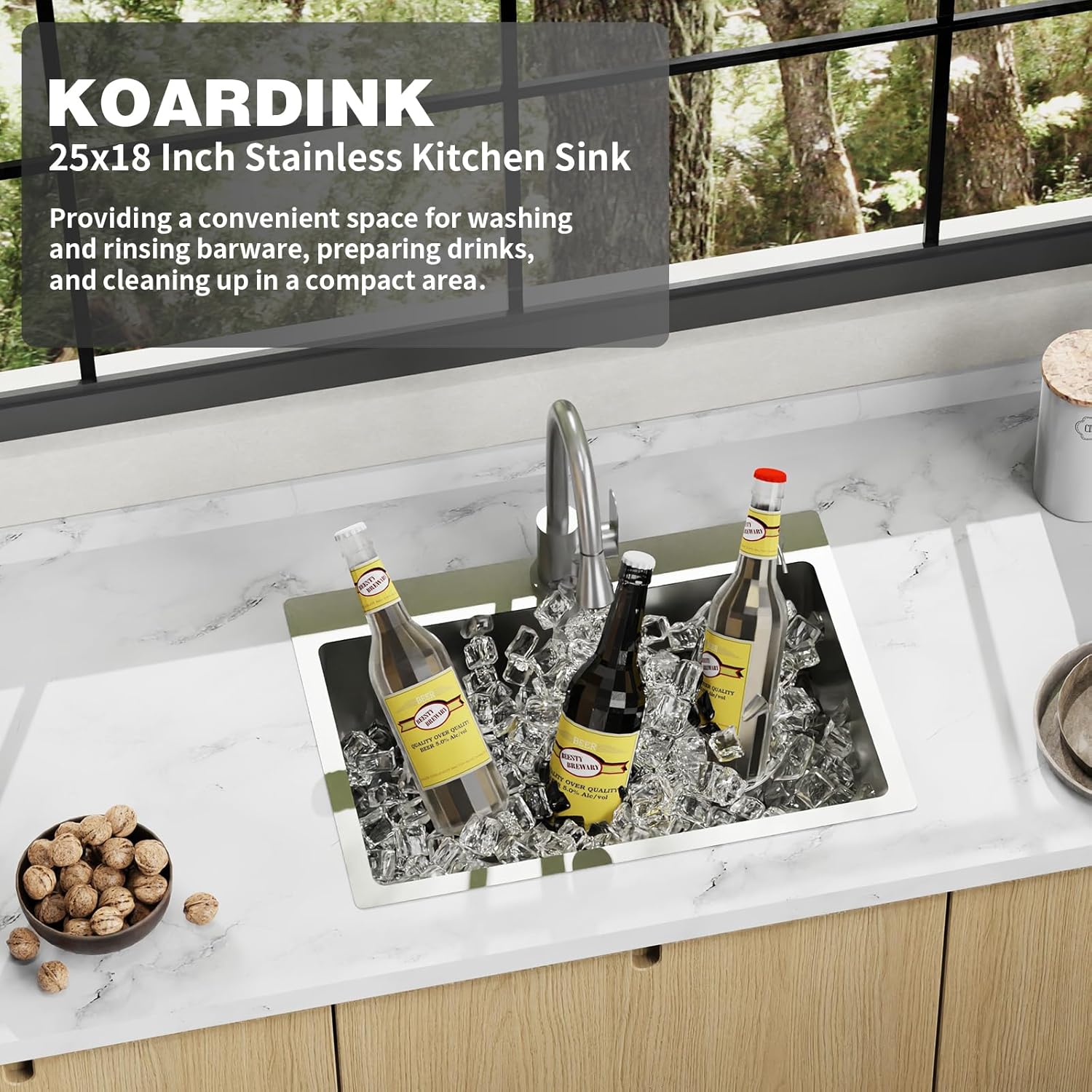 - Versatile Compatibility: 25x18 in kitchen sink can work well with various countertop materials, such as granite, quartz, or marble. Stainless steel kitchen & bar sink complement various kitchen styles and designs. Whether you have a contemporary, traditional, modern kitchen or bar, a stainless steel sink can seamlessly integrate into your aesthetic.
