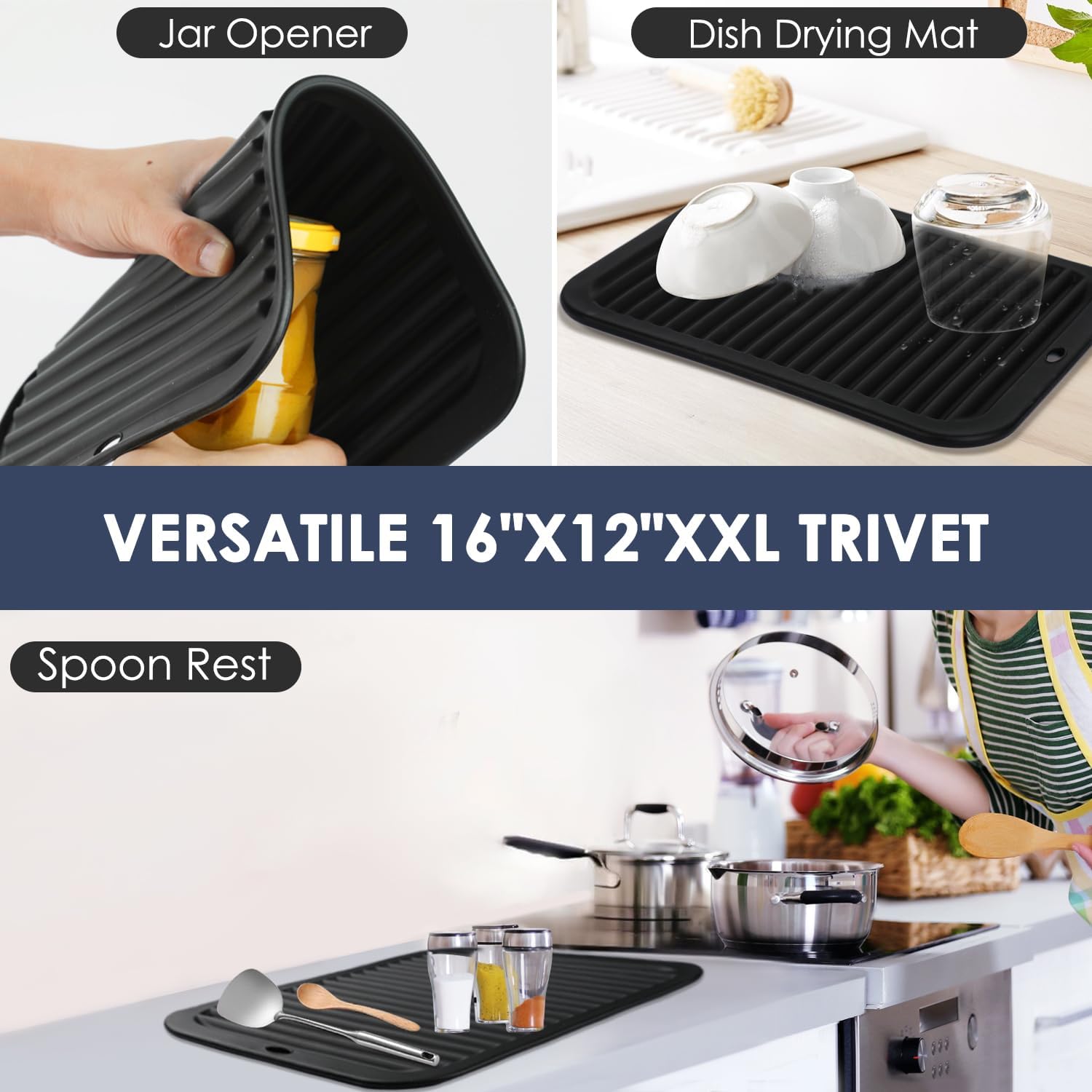 Black Silicone Trivet 16'' X 12'' Silicone Hot Pads for Kitchen Nonslip and Heat Resistant Hot Pads Trivets for Kitchen Quartz Countertops (Black)