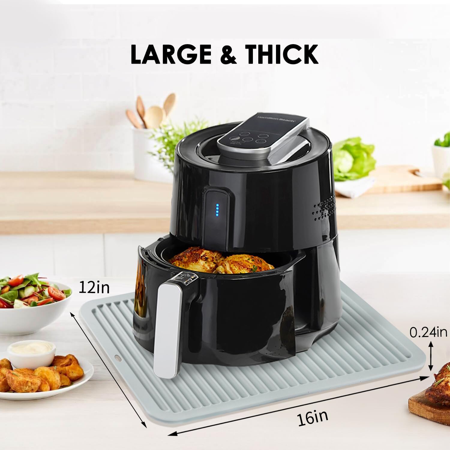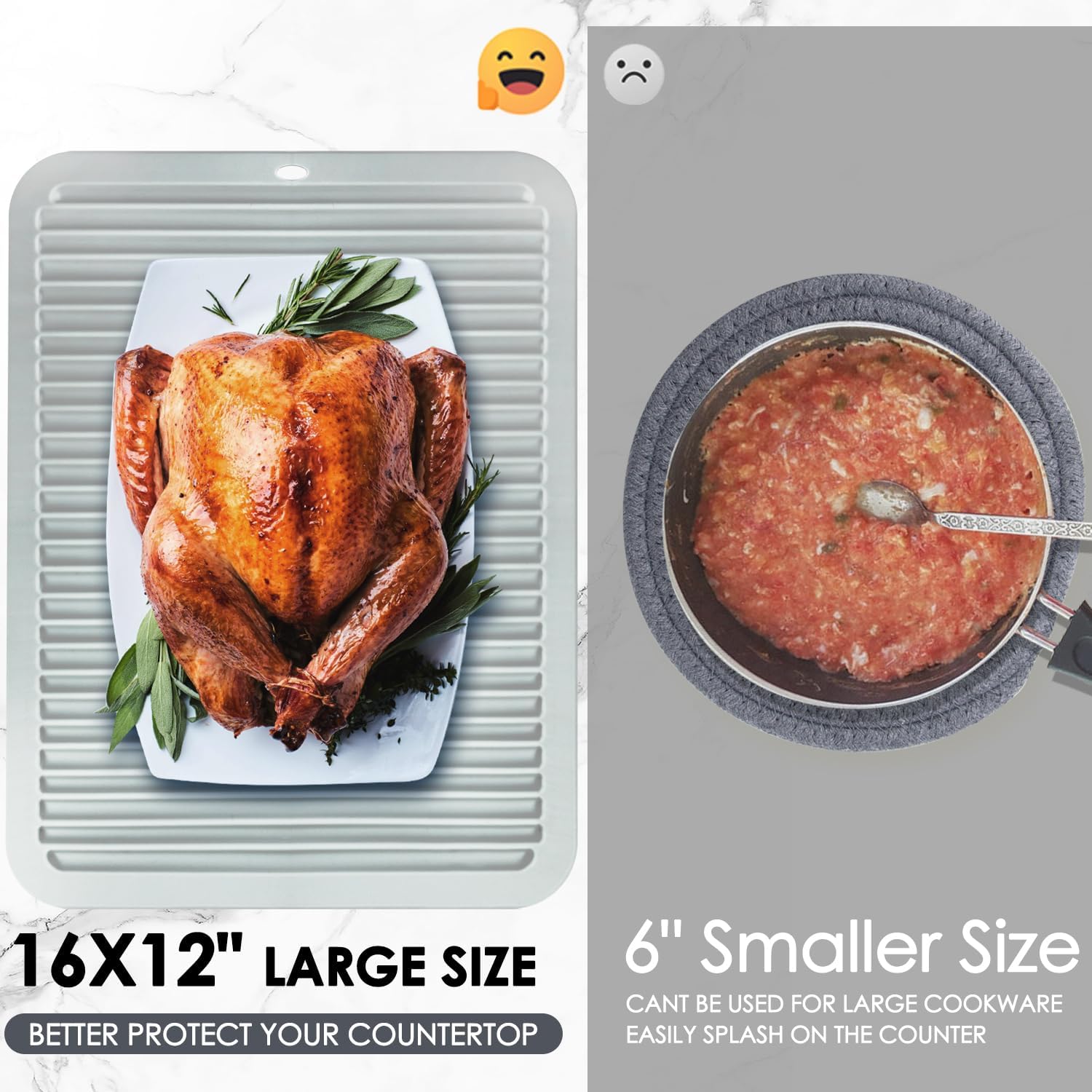 - 【HEAT RESISTANT】16'' X 12'' hot pads for kitchen have a temperature range of -30℃ to 230℃. Unlike other heatproof silicone mats for kitchen countertops designs, this hot mats for kitchen raised-ridges wave design can separate hot pots and hot pans from the countertops well, protecting your kitchen quartz from scalding, add a touch of fashion to your countertop with our wave design gray silicone hot pads