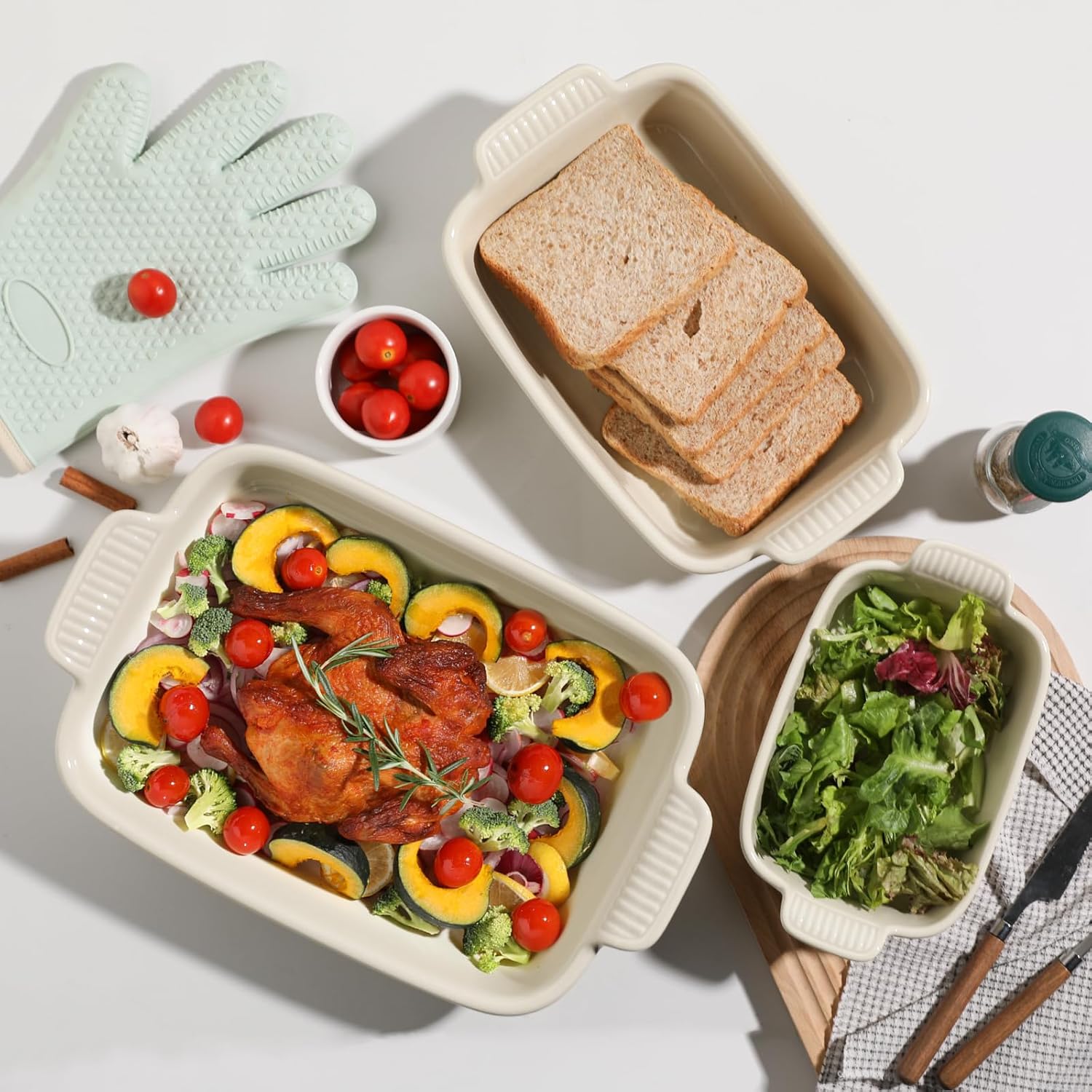 - Meet Your Daily Needs - Rectangular baking dish set serve for pizza, bread, pasta, lasagna, chicken, roast, beef, vegetables, food heating and storage, meet your different needs.