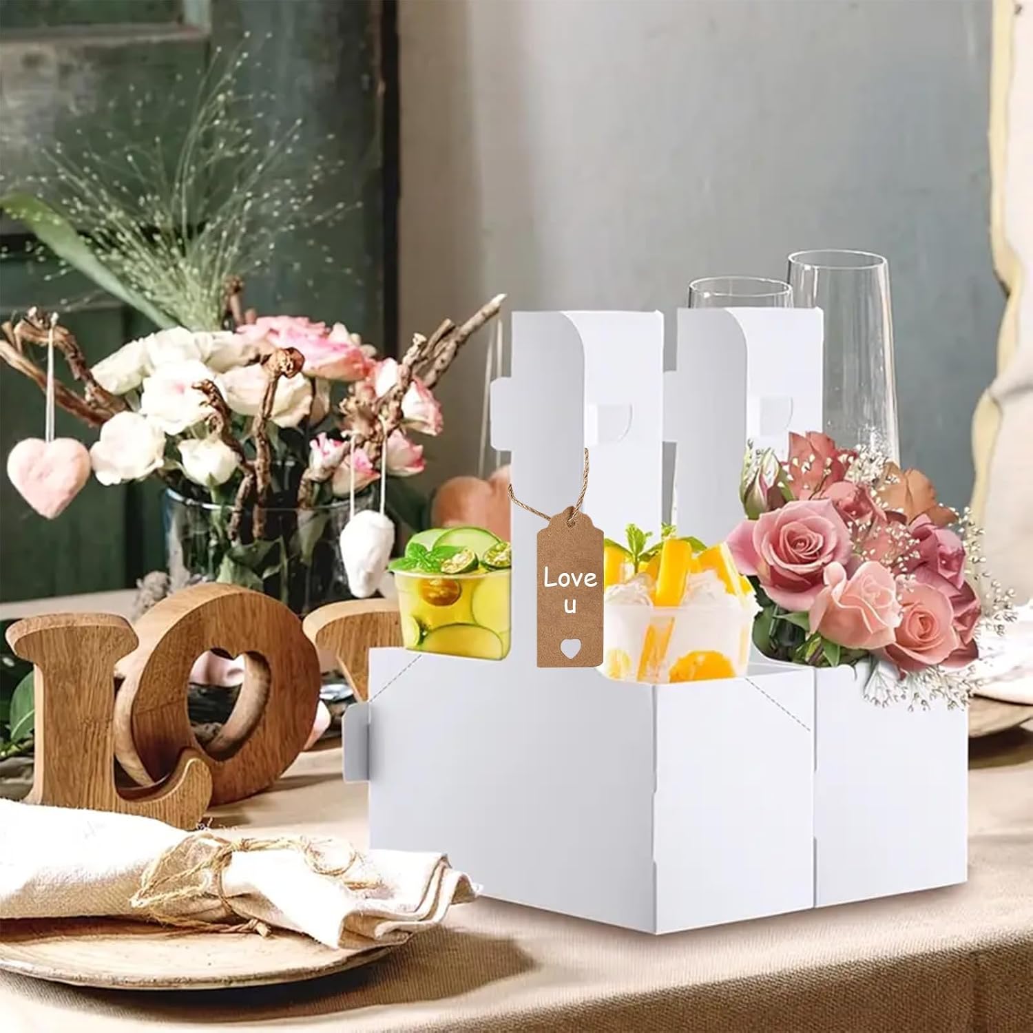 - Sufficient quantity: Our coffee holder package contains a total of 10 white cardboard two-cup drink holders, and also comes with love cards and rope. You can write their message or wishes on the card and place them on the paper cup holder with the rope. It is suitable for Teacher Appreciation Week and Mother's Day, Valentine's Day and other festivals