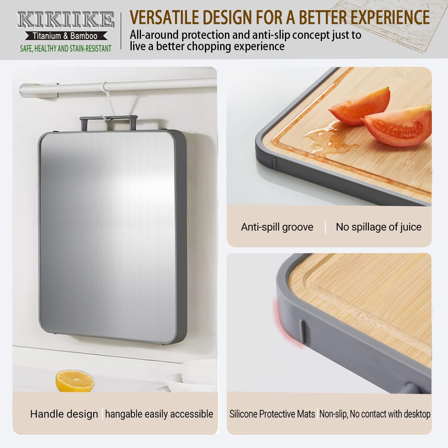 Titanium Cutting Board Double Sided Bamboo Cutting Board for Kitchen Double Sided Food Grade, Pure titanium & Bamboo Cutting Boards, Non-Stick Durable and easy to clean