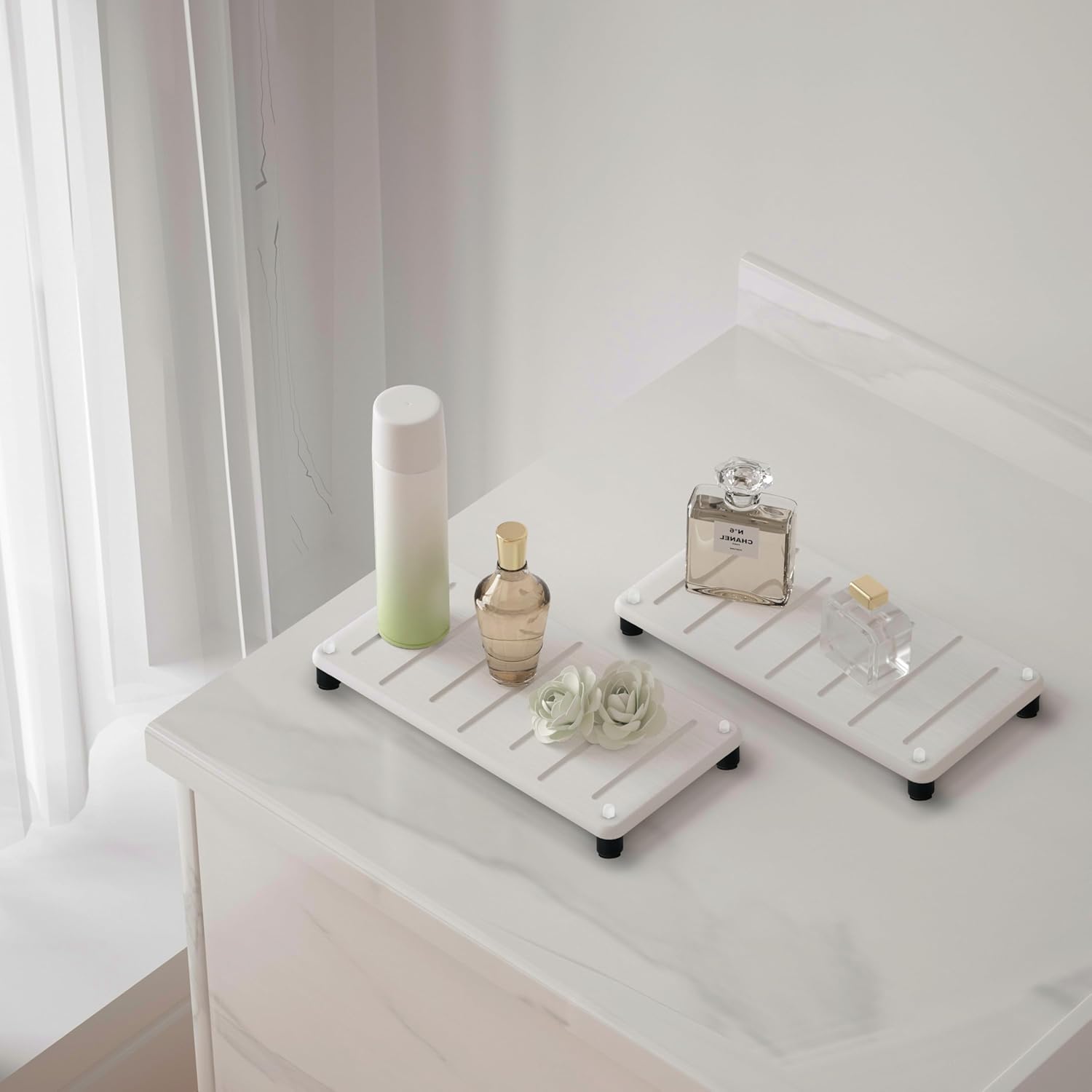 2PCS Water Absorbing Stone Drying Mat for Bathroom Sink & Kitchen Counter Organizer, Instant Dry Soap Dispenser Sponge Holder, Sink Caddy, Vanity Tray (8.66"x4.33"-White)