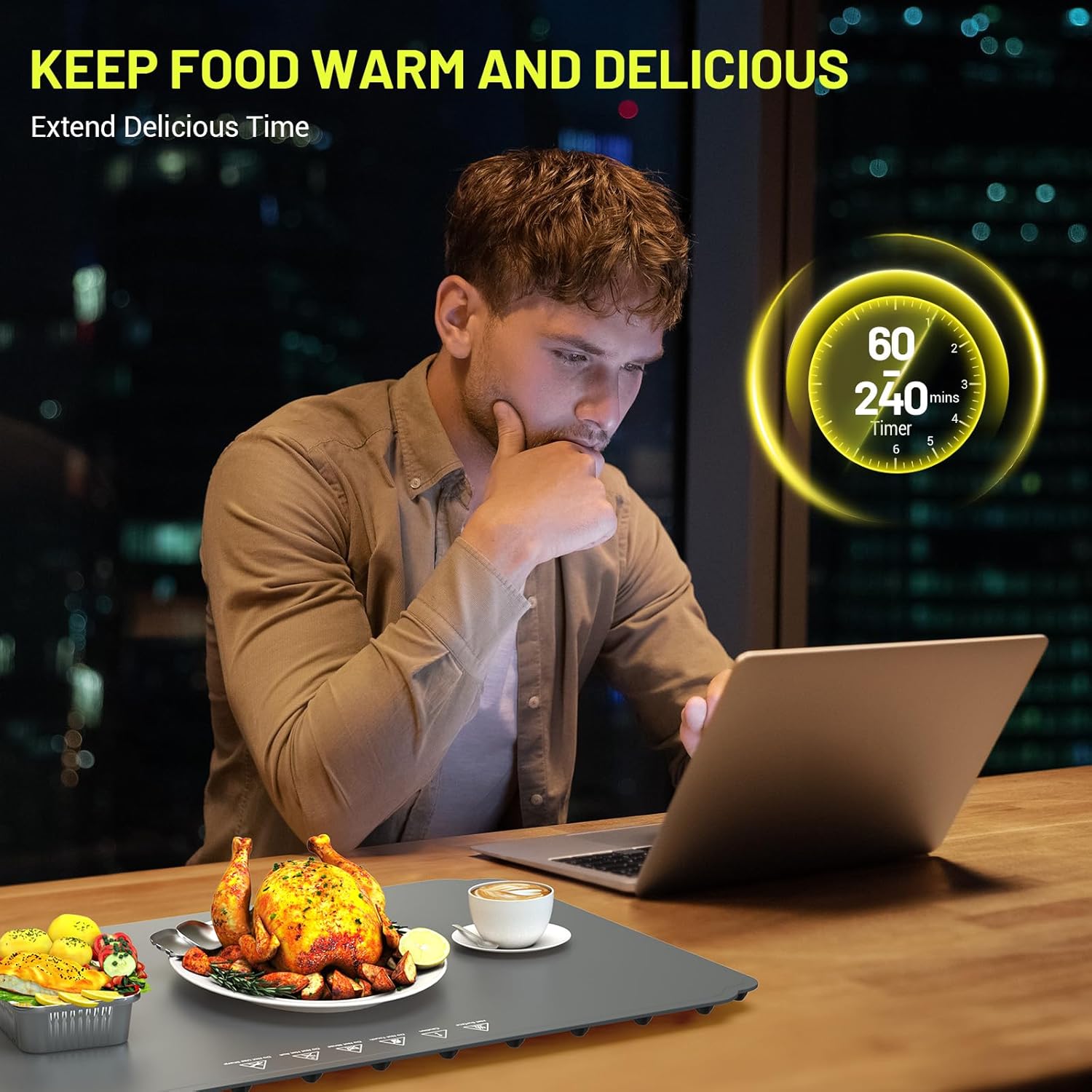 Food Warming Mat, Food Warming Mats for Countertop, Portable Electric Warming Tray for Parties Buffet with 3 Temp & 4 Hours Timer Setting, for Parties, Gatherings, Everyday Use