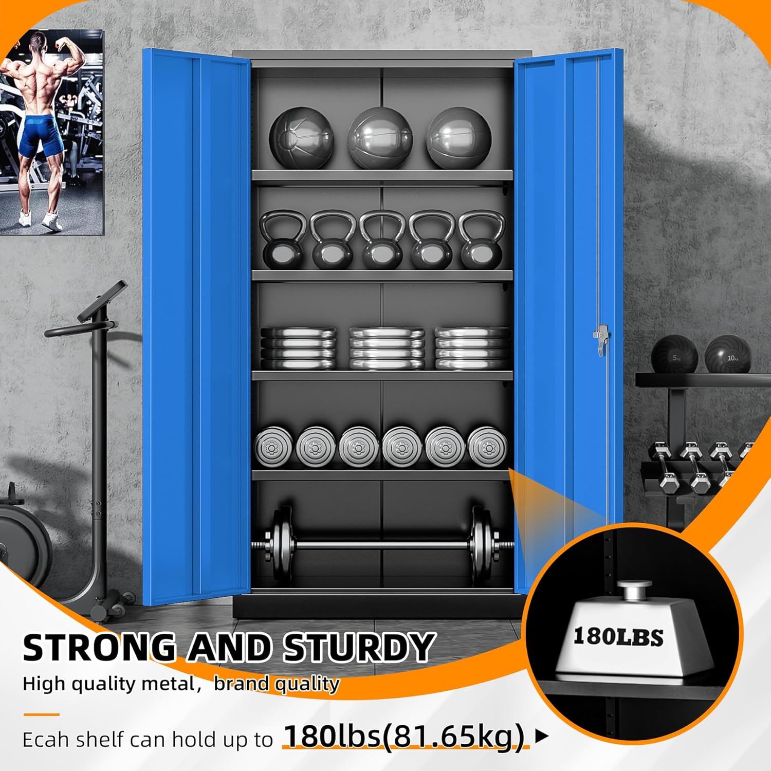INTERGREAT Storage Cabinet, 72” Steel Locking Closet with Doors and 4 Adjustable Shelves, Tool Unit for Home Office, Garage & Tall Lockable File Cabinet, Black Blue.
