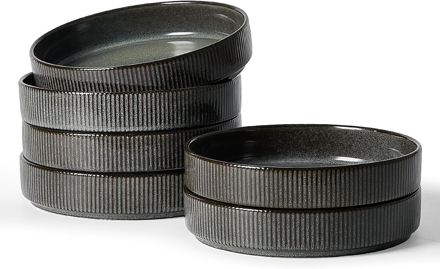 famiware Star 8.25" Pasta Bowls, Large Dinner Bowls Set of 6, Salad Bowl Plates, Shallow Bowls for Eating, Deep Forest