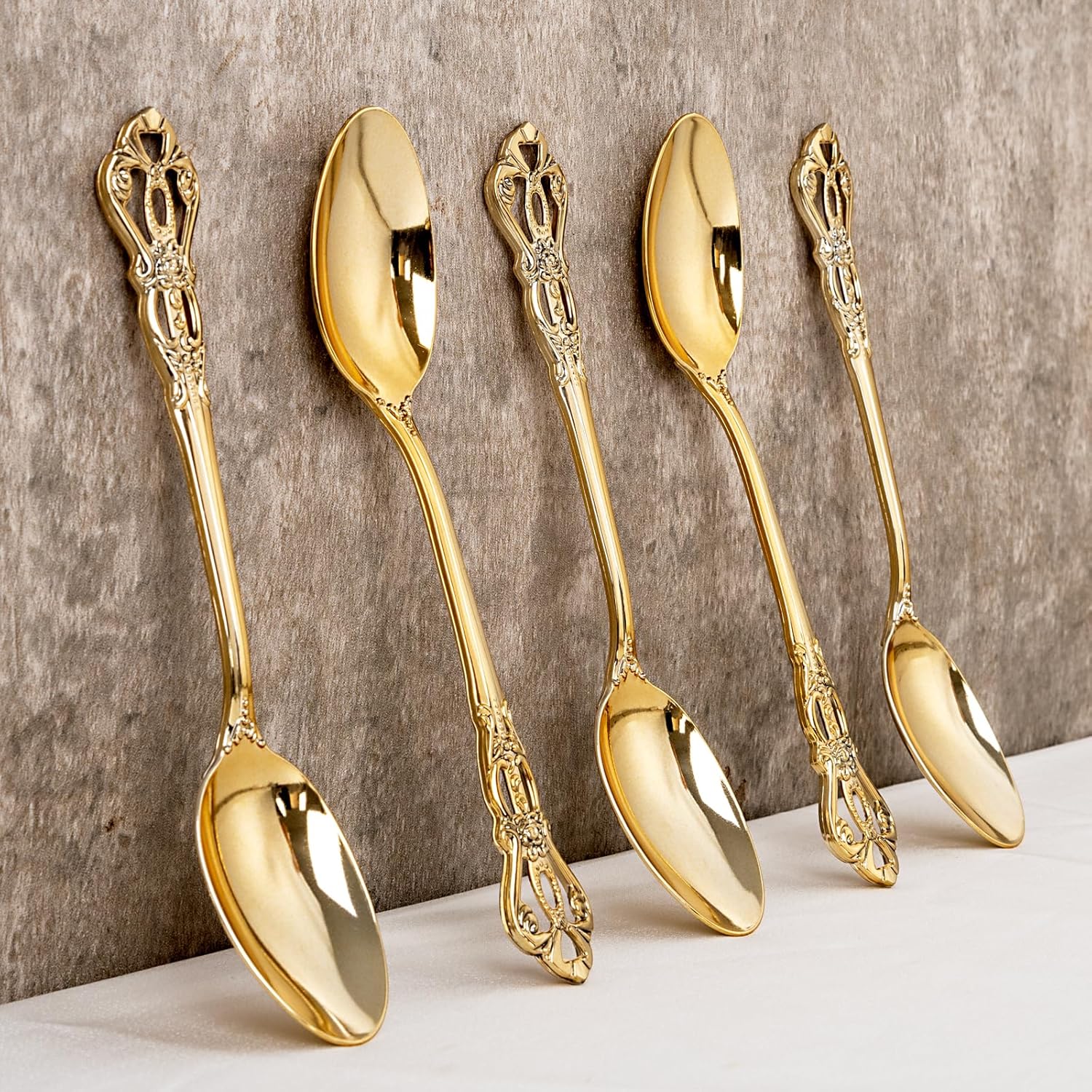 - Elegant Design: The vintage gold plastic spoons are adapt to the hollow design make these gold spoons disposable perfect for elevating any table setting, from weddings to themed parties. It includes 75 gold plastic spoons disposable, ensuring you have enough for every guest