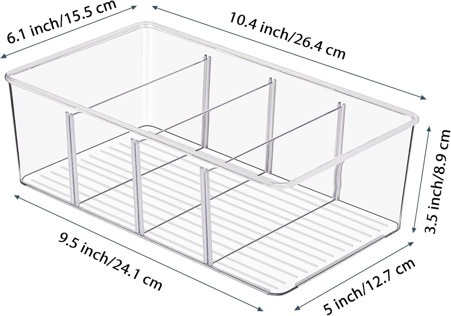 - Removable Dividers — There are 3 removable dividers in each food storage organizer bin, making it easy to separate and organize your items, you can quickly see and grab what you need.