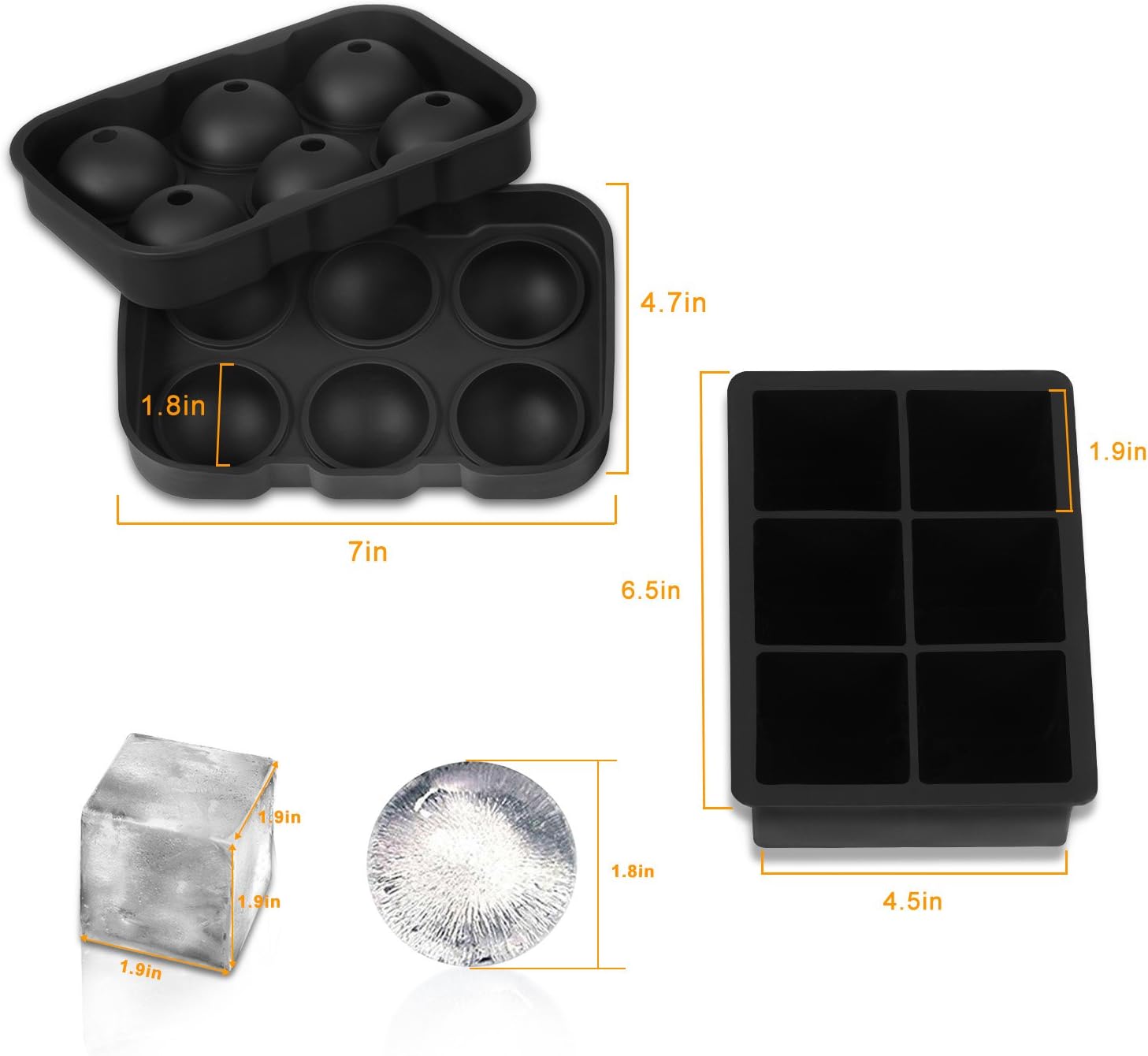 Ice Cube Trays (Set of 2), Sphere Ice Ball Maker & Square Large Ice Cube Molds, Freezer Molds for Whiskey, Cocktails, Homemade Drinks-Reusable & BPA Free