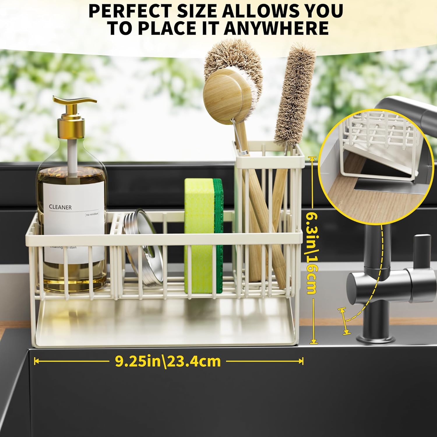 - Cisily Off White Sponge Holder for Kitchen Sink, Sink Caddy Organizer with High Brush Holder, Kitchen Countertop Rustproof 304 Stainless Steel, Soap Dispenser Kitchen Organizers and Storage Essentials