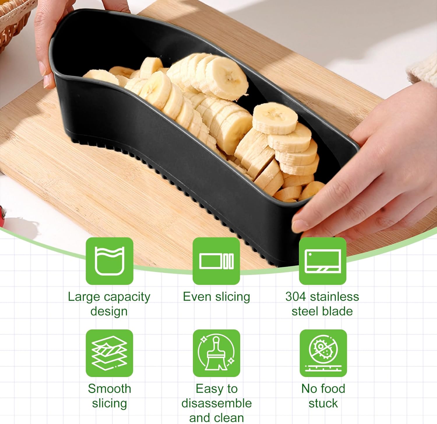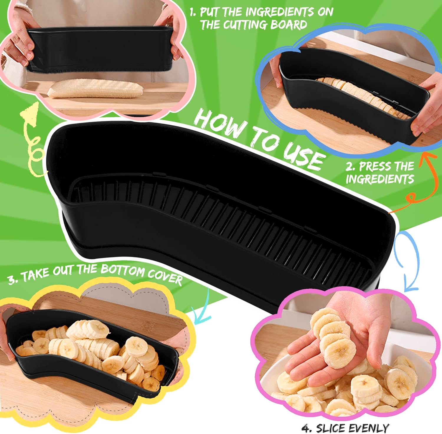- 4. Effortless & Safe to Use β Simply place your banana, strawberry, or other ingredients into the slicer and press down for instant, uniform cuts. No more messy chopping or uneven slicesβjust quick, consistent results with no risk of knife slips!
