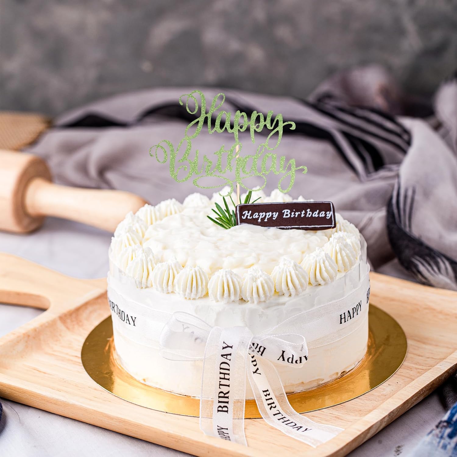 Happy Birthday Cake Toppers 9 Inch Glitter Happy Birthday Cake Pick for Birthday Anniversary Theme Party Cake Decorations Supplies - Olive Green