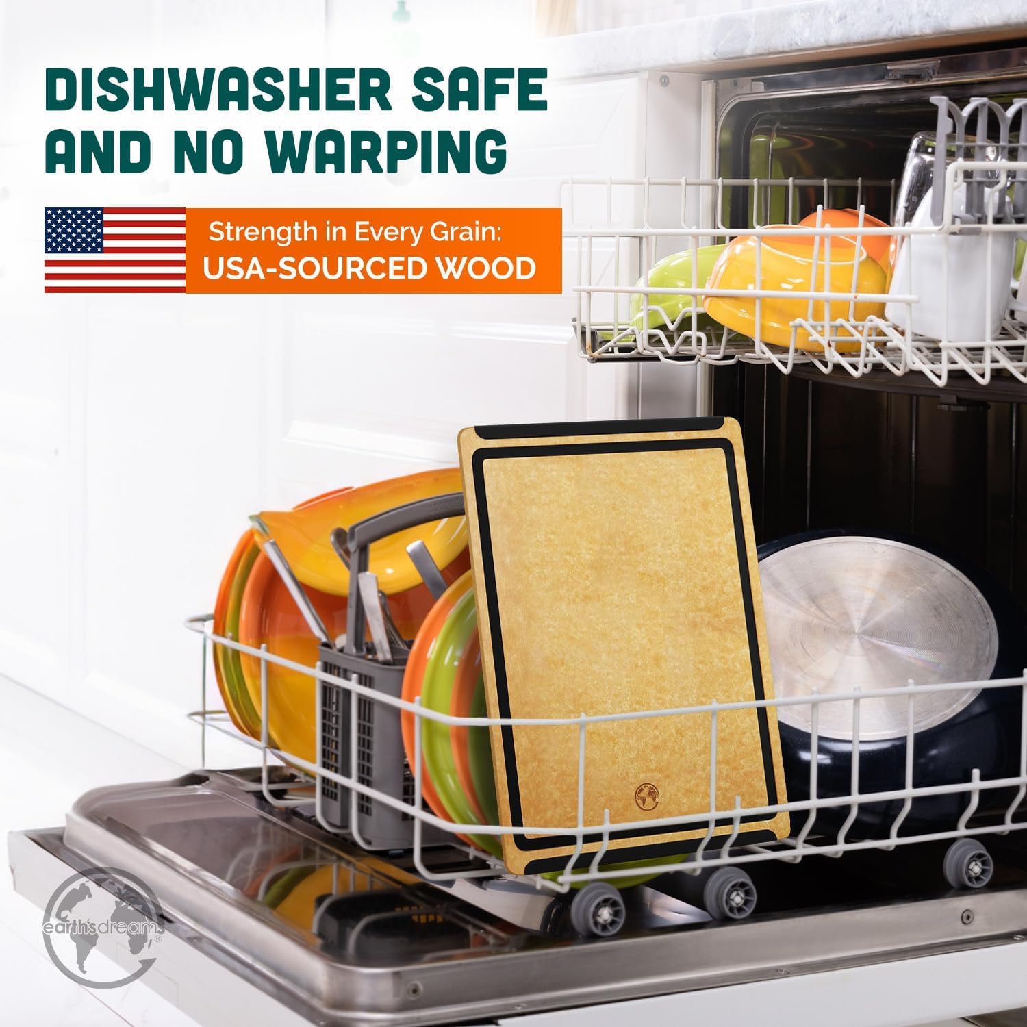 Earth’s Dreams Wood Cutting Board 17x12 Extra Large - Charcuterie Board, Non-Plastic, Non-Toxic, Heavy-Duty, Dishwasher Safe (Tan/Blacks)
