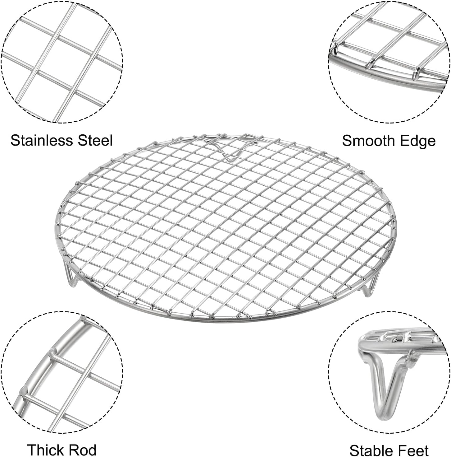 uxcell 2 Pcs Round Cooking Rack with Legs, Dia 9.8 Inch 304 Stainless Steel Barbecue Grill for Cooking Baking Barbecue Air Fryer Racks, Silver