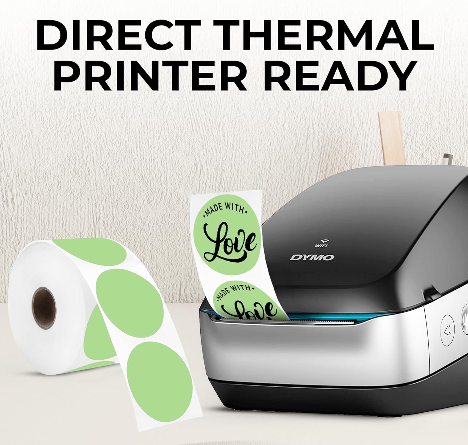 Perco Green 2-Inch Perforated Circle Dot Thermal Sticker Labels — 735 Stickers/Roll, Direct Thermal Printer Compatible—with Permanent Adhesive for Organizing, Color Coding, Bin Labeling—Made in USA
