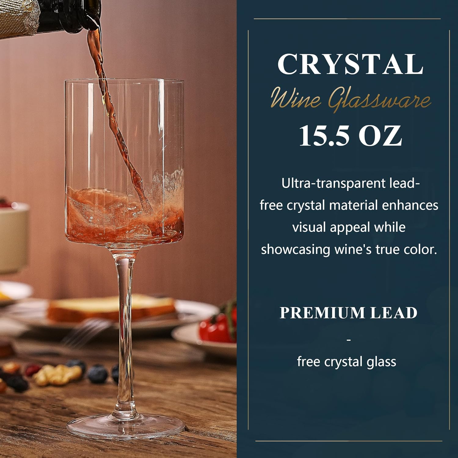 MICHLEY Square Crystal Wine Glasses Set of 4-15.5 oz large Long Stem Glassware Red/White Glasses Drinkware Perfect Gifts for Women, Wedding,Birthday Decorations