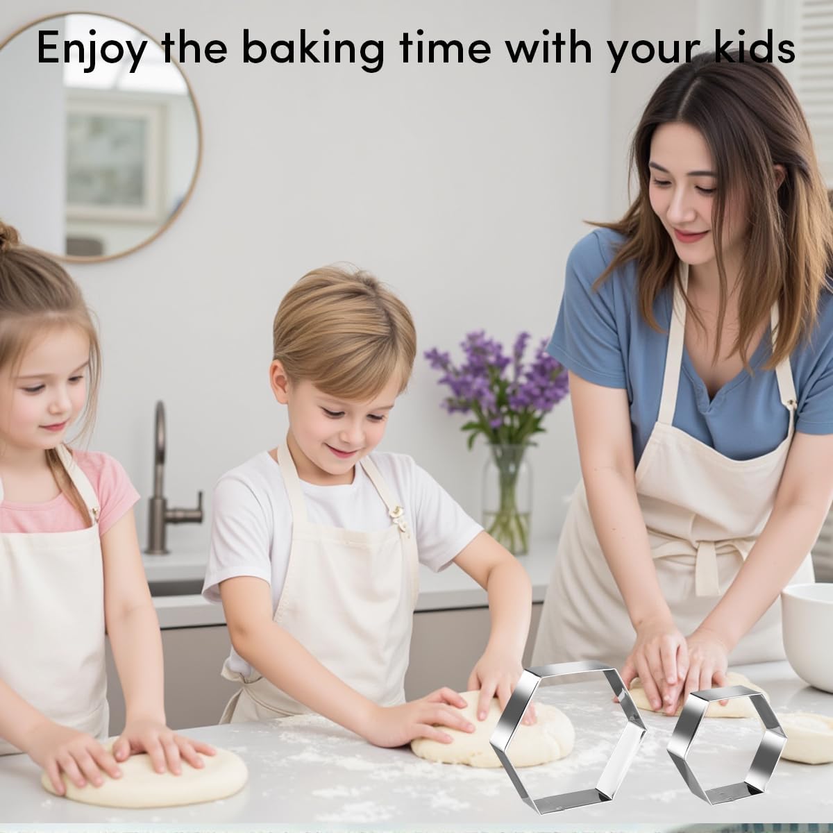 - 【Regular Hexagon Cookie Cutter Set】 Show our hexagon shaped cookie cutters biscuit fondant mold in four assorted sizes. Geometric shapes can stimulate children's spatial imagination. Let's start making these hexagon cookies with kids or friends!