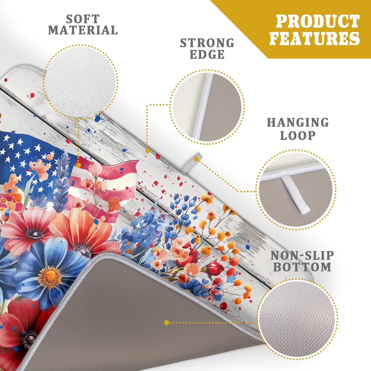 4th of July Dish Drying Mat 18x24 inch Patriotic Floral Fast Dry Microfiber Reversible Dish Drainer Rack Pad Kitchen Counter Accessories