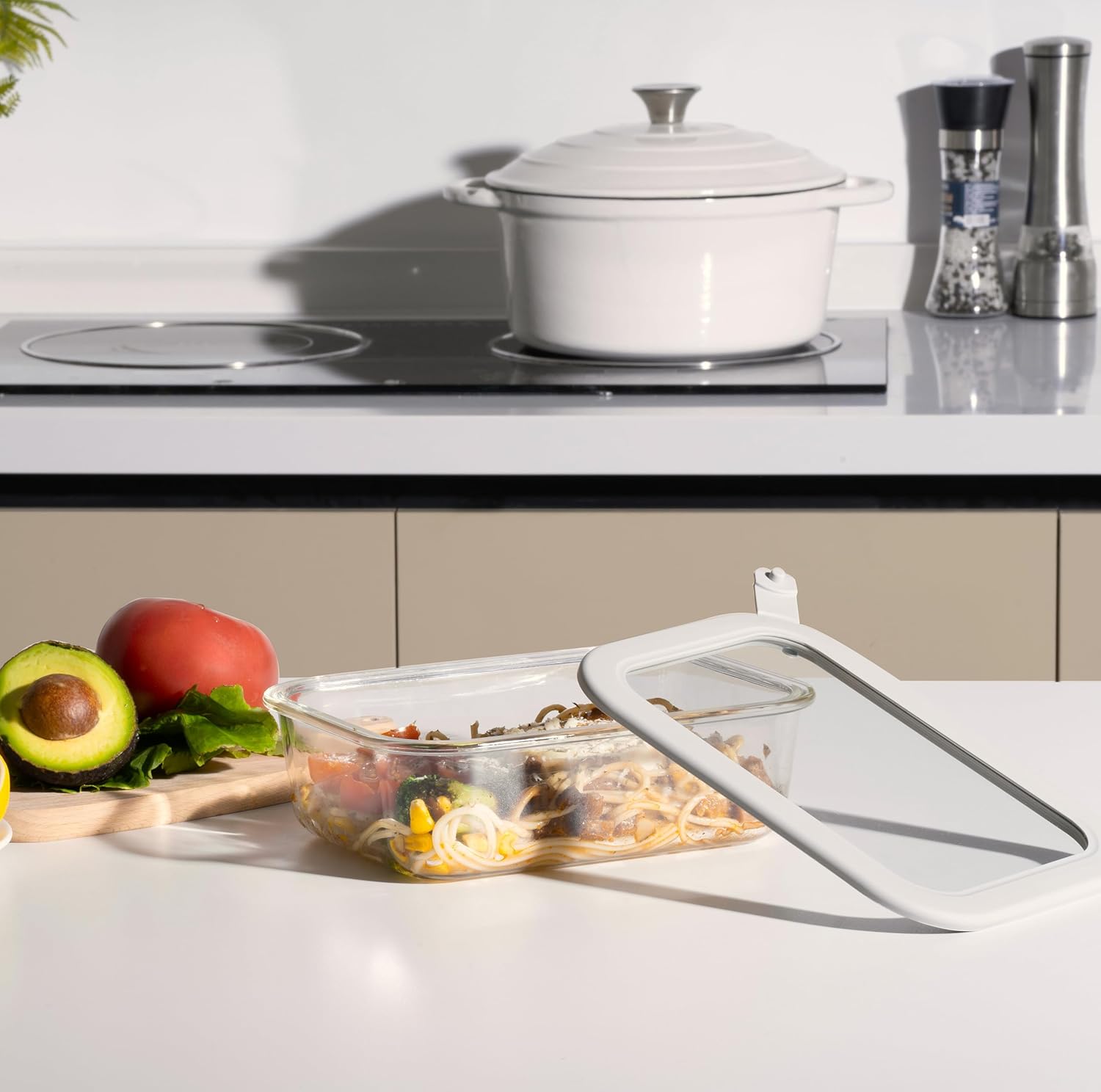 - ✅STYLISH & CLASSIC GREY COLOR: Our glass container set features clear glass lids with stylish light grey silicone frames for easy viewing that puts your leftovers in the spotlight. Each set comes in modern grey colors that will match with your classic collection.
