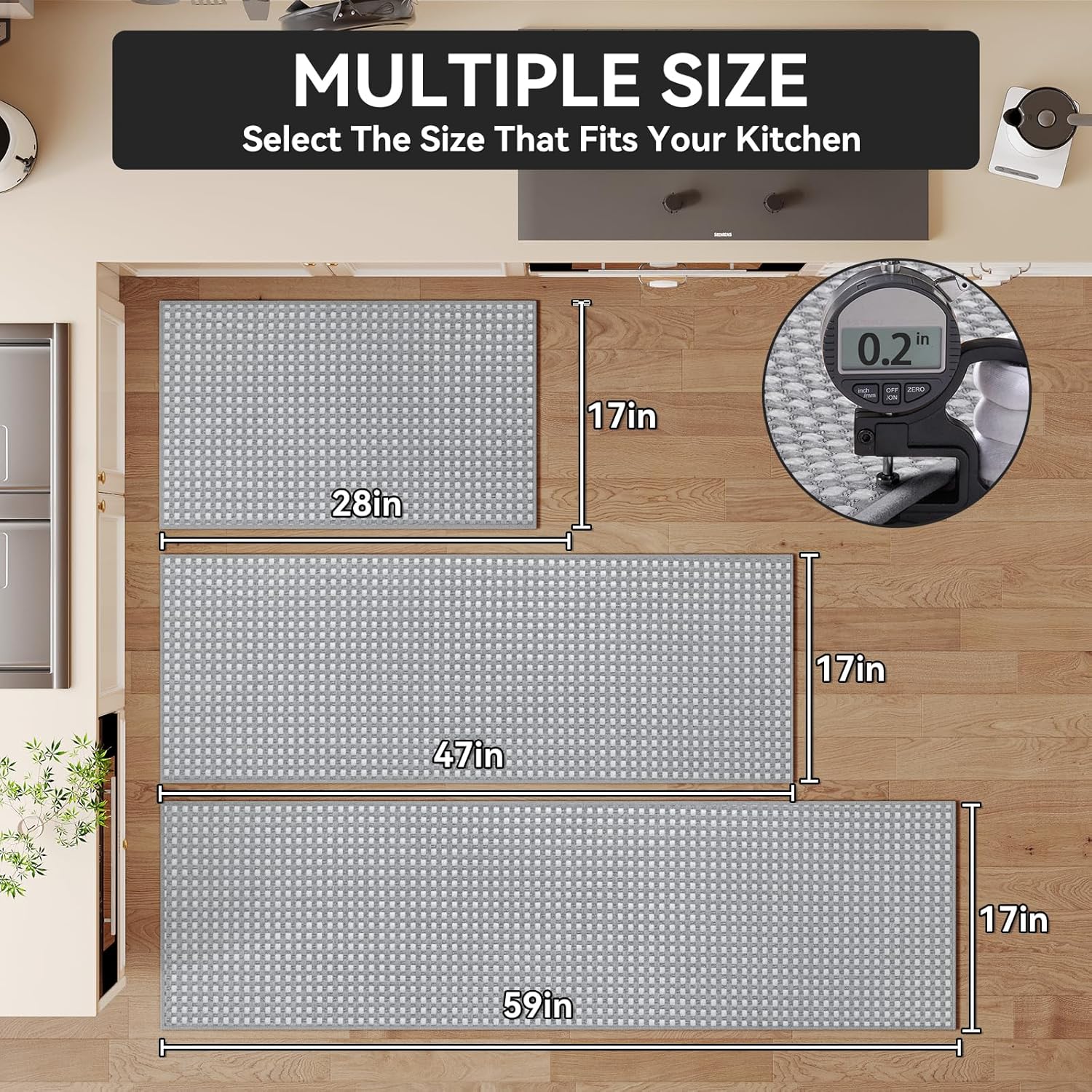 - Super Non-slip Kitchen Mat: The non-slip rubber backing can increase slip resistance, and its grip effect allow you standing firmly on the kitchen mat without slipping. Our kitchen rugs nonslip can provide security for your family. It can be applied on hardwood floors, tiles, linoleum, and other smooth surface without any concern.