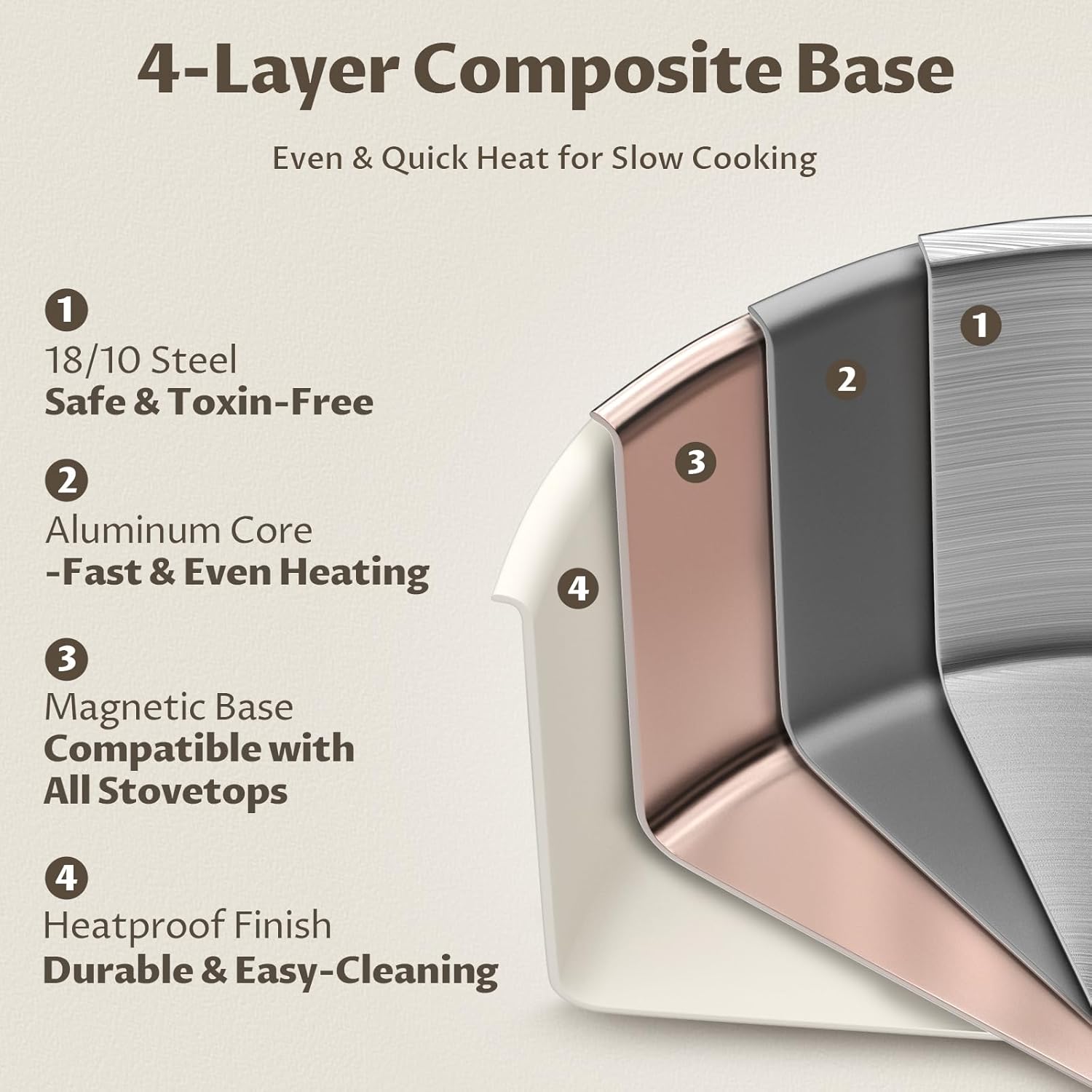 - ๐๐ฅ๐ฅ ๐๐ญ๐จ๐ฏ๐๐ญ๐จ๐ฉ๐ฌ & ๐๐ฏ๐๐ง-๐๐๐๐๐ฒ: A versatile induction pot compatible with gas, electric, and induction cooktops. Oven-safe (up to 450โโ) for braising, baking, or making casseroles