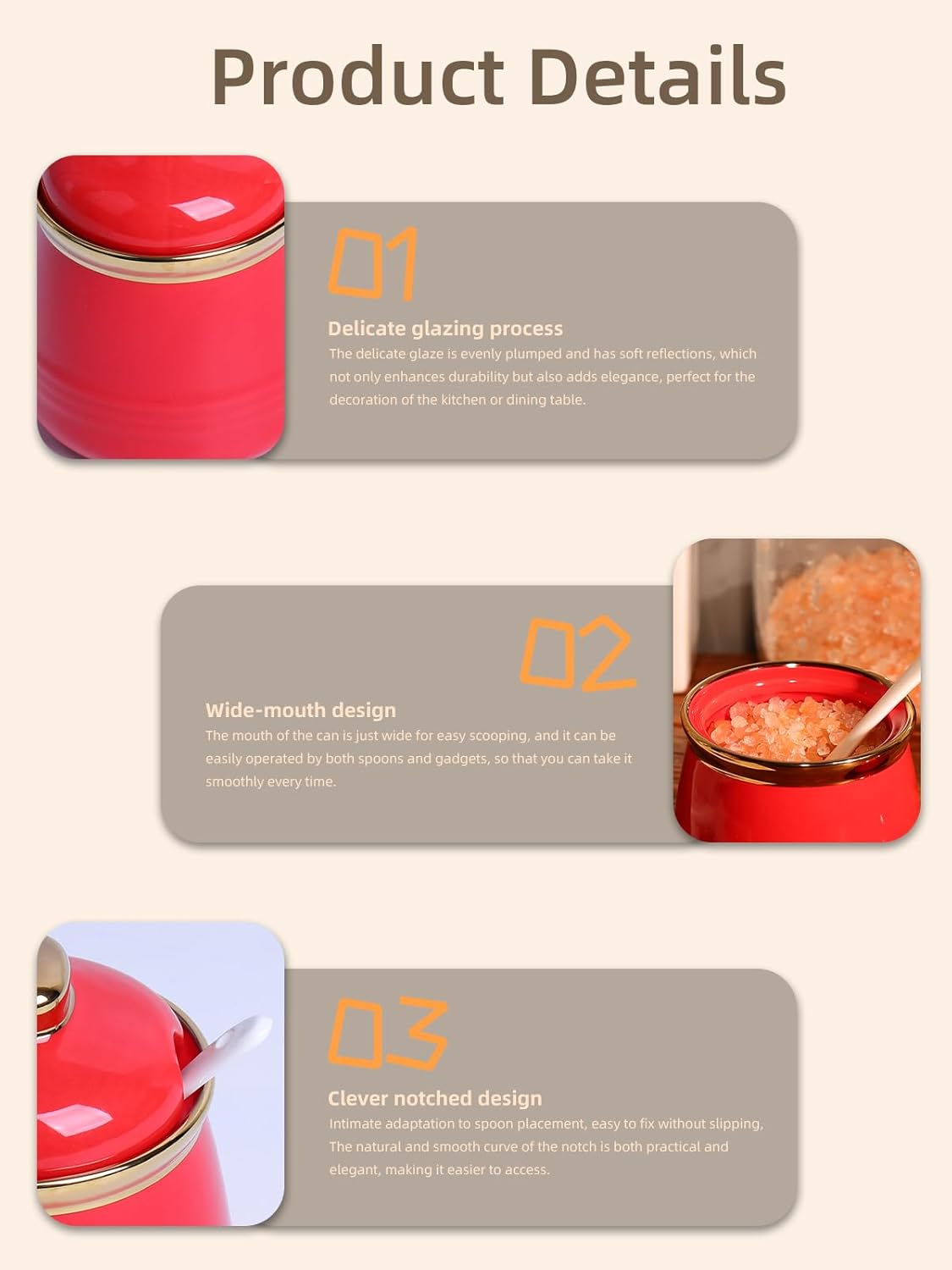 - DESIGN CONCEPT: This simple sugar bowl is equipped with a lid and a small spoon. The lid can keep your ingredients away from dust. There is a perfect notch on the lid for placing the spoon, so you donβt have to worry about placing the spoon randomly