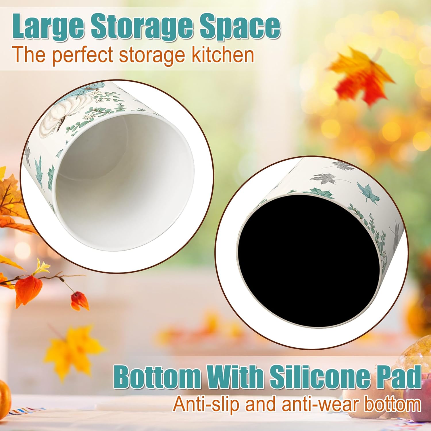 - QUALITY MATERIAL AND CRAFTSMANSHIP: This fall kitchen utensils is made of high standard ceramic material, which is durable and easy to clean. The surface treatment is delicate, warm to the touch,to ensure that long-term use is still as good as new, to provide solid protection for your storage needs, add fall atmosphere to your kitchen