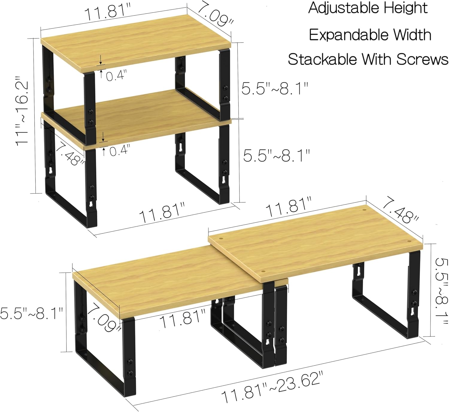 Expandable Kitchen Cabinet Organizer Shelves – Stackable Adjustable Metal and Wood Storage Racks for Countertop, Pantry, Garage Set of 2 Spice Rack – Easy Assembly, Space-Saving(1 Pack/Medium/Black)
