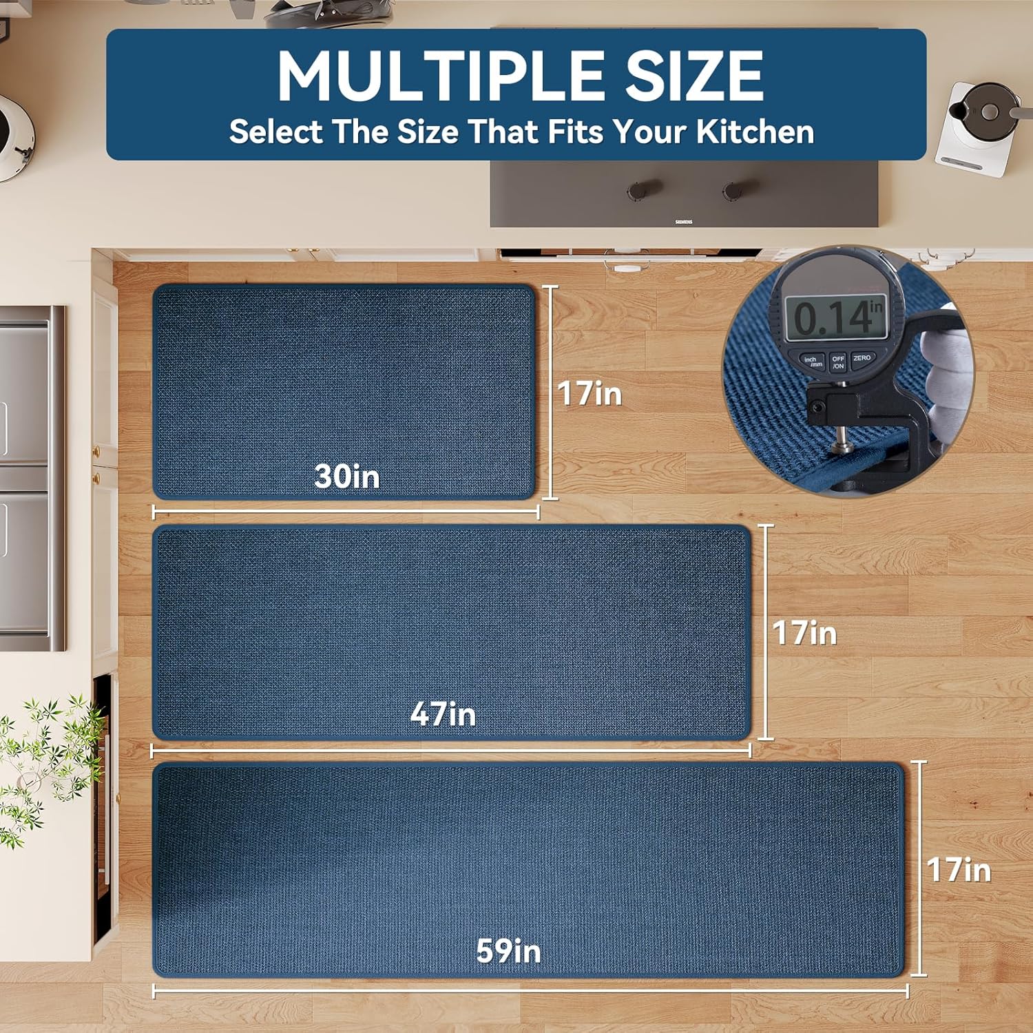 - Multi-purpose: Kitchen mats for floor widely used for home decor, in front of sink, indoor front welcome mat, living room, back doors etc.We provide two sizes to choose from: 17"x30", 17x47",17x59"