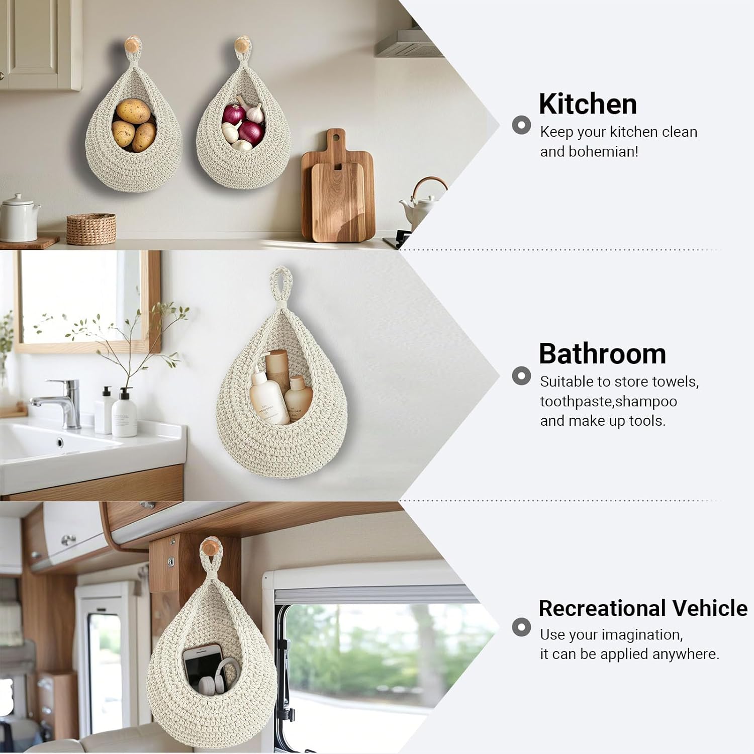 - Product Usage: These wall mounted storage baskets can be hung on the walls of the kitchen and the restaurant for storing fruits, flowers, plants and vegetables. They can also be placed in bathrooms, bedrooms for a wide range of uses, making your space more bohemian