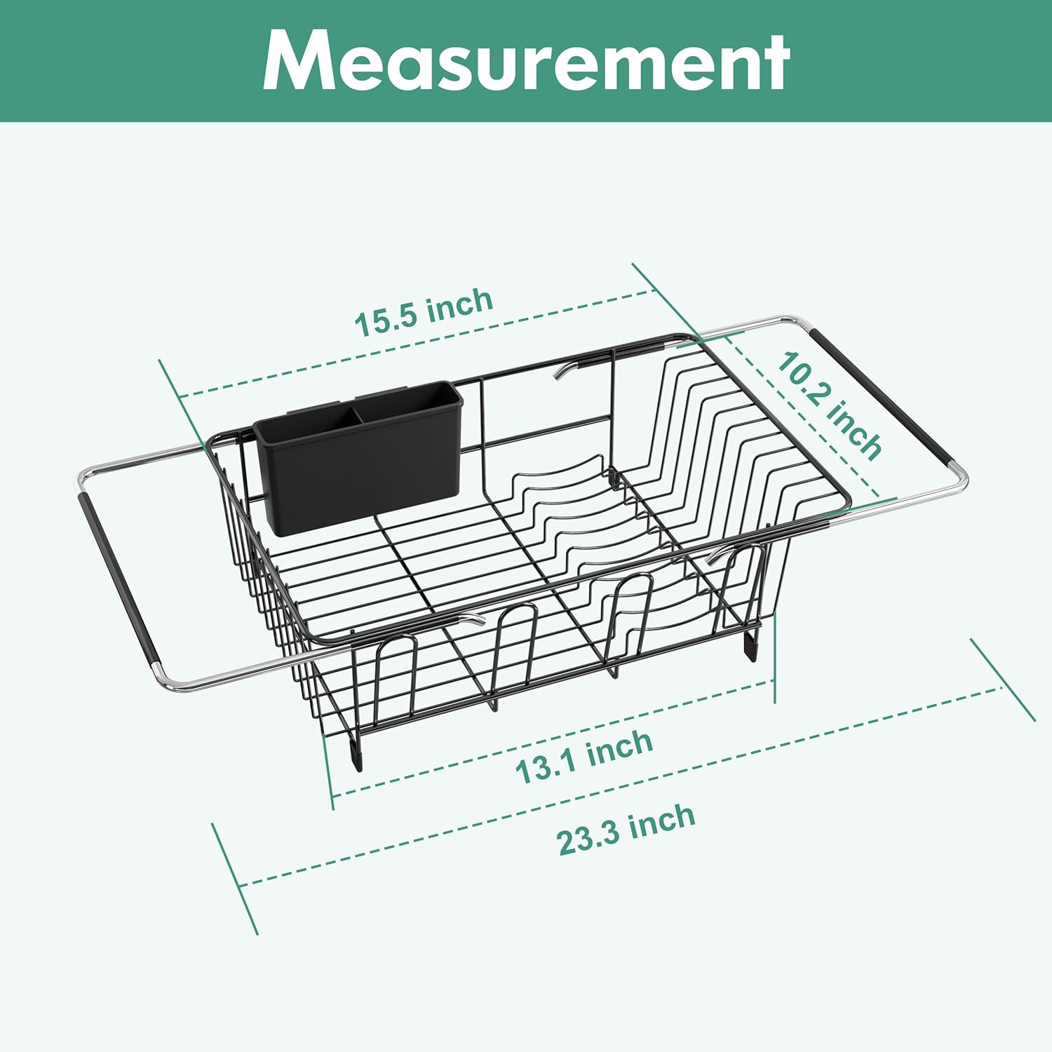 - 📏Two Independent Sliding Rods for Custom Fit: Customize width with dual slide and lock rods. Main frame remains compact while adapting to single, double, farmhouse sinks. Secure expandable dish drying rack stability. The ultimate extendable dish drying rack for 16" to 24" spaces