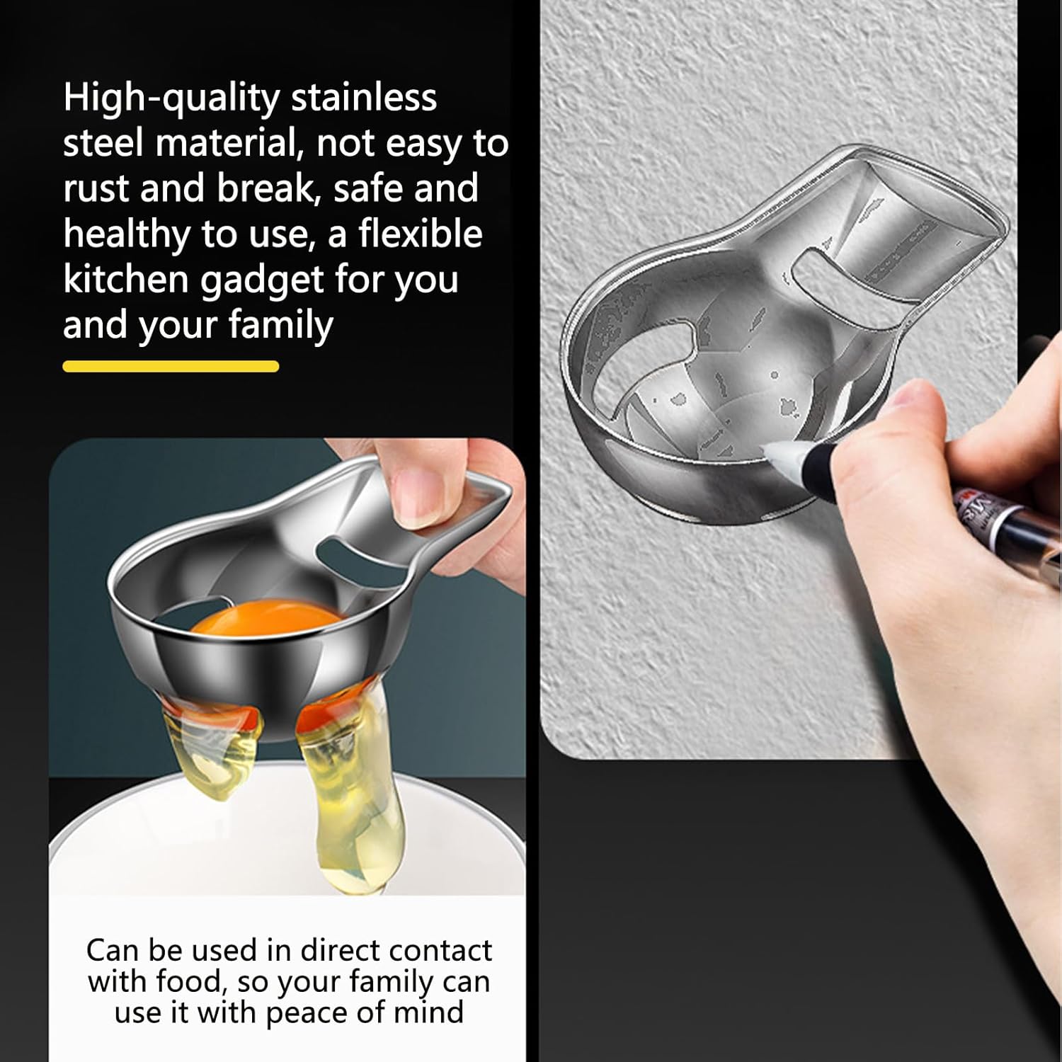 - Food-grade Safety Material: The egg yolk separator is made of food-grade stainless steel, which is thick and durable, not easy to rust, corrosion-resistant and easy to clean, ensuring the safety of contact with food ingredients