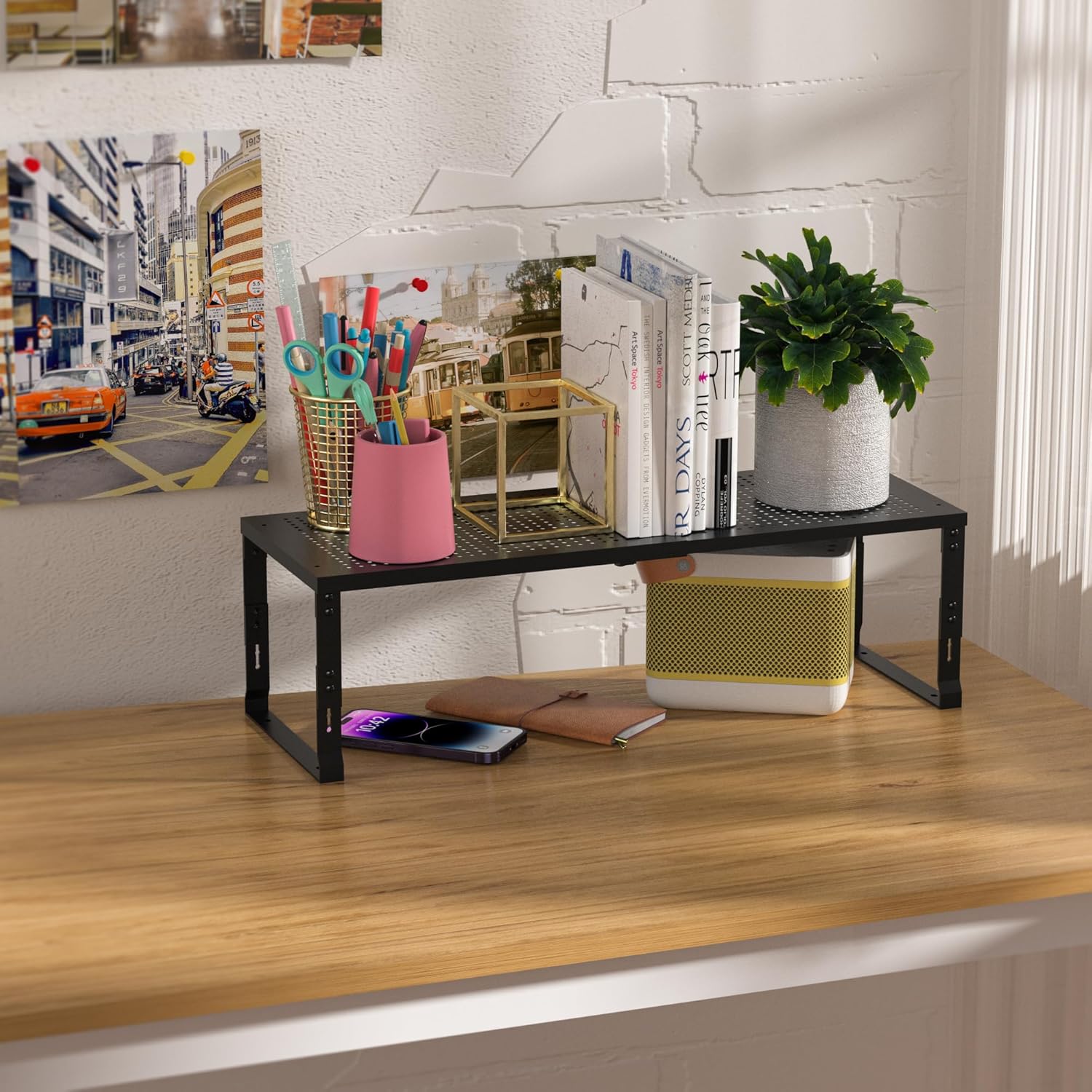 Heavy-Duty Adjustable Metal Shelf Organizer - Expandable & Stackable Pantry Storage Rack for Kitchen, Bathroom, RV, Cabinets(3 Packs/Black, Large)