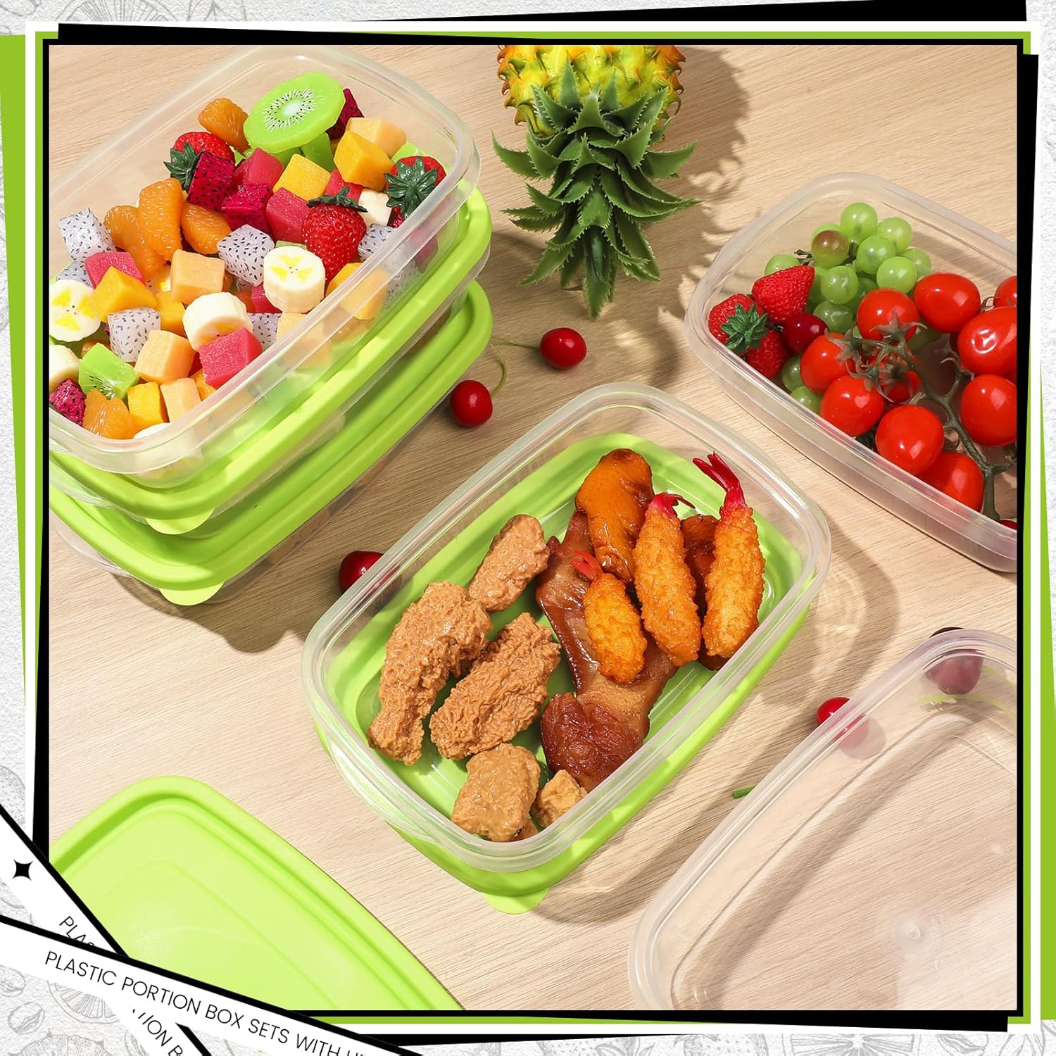 - Stackable Design: these plastic portion box with lids boast a stackable design that saves space in your fridge, freezer or pantry; Organize your meals or ingredients efficiently, enabling you to find exactly what you're looking for, exactly when you need it