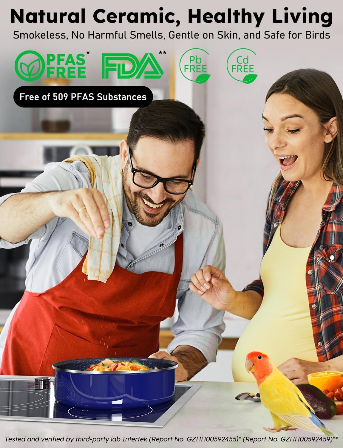 - FREE OF 509 PFAS TYPES & NON-TOXIC: Independently tested by Intertek, this detachable handle pots and pans set is verified to be free of 509 known PFAS substances (Report No. GZHH00592455). It also meets FDA standards (Report No. GZHH00592459). Made with food-grade and natural materials, it delivers a smokeless, odor-free cooking experience that’s gentle on skin and safe for birds, children, and pregnant women. It’s also an eco-friendly choice for a more sustainable lifestyle