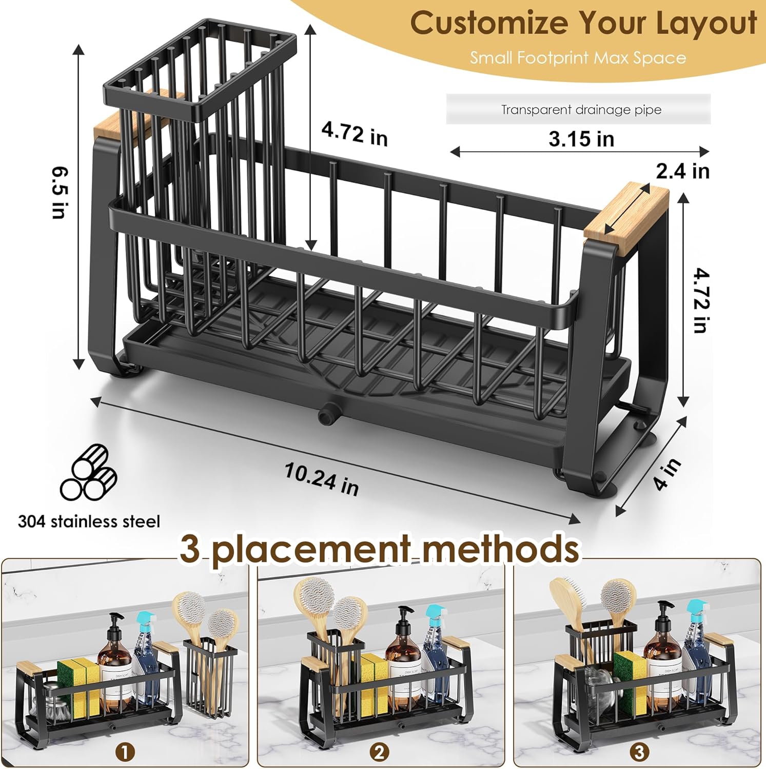 - ăSmall Footprint Max SpaceăOur kitchen countertop organizer has upgraded the height of the brush rack storage part and adopts a unique engineering design. It measures only 10.24"*4"*6.88"ïŒthe same size can hold 30% more capacity than standard brush holder, and flexible storage for dish soap, brushes, sponges.