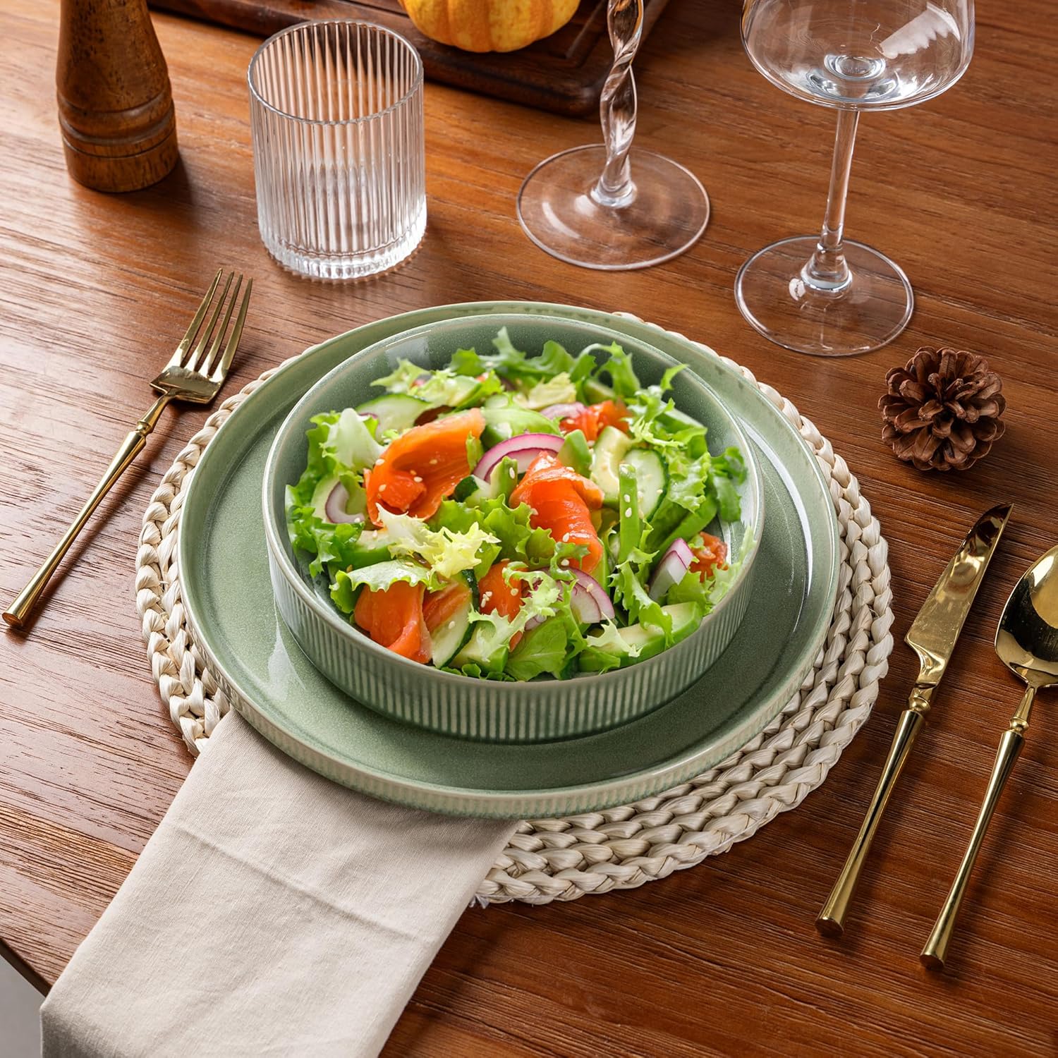 - Healthy, Lead-Free & Chip-Resistant: Crafted from premium, double-fired ceramic, this dinnerware is lead-free and cadmium-free, ensuring no harmful chemicals leach into your food. The durable stoneware construction makes it exceptionally chip-resistant and built for long-lasting daily use.