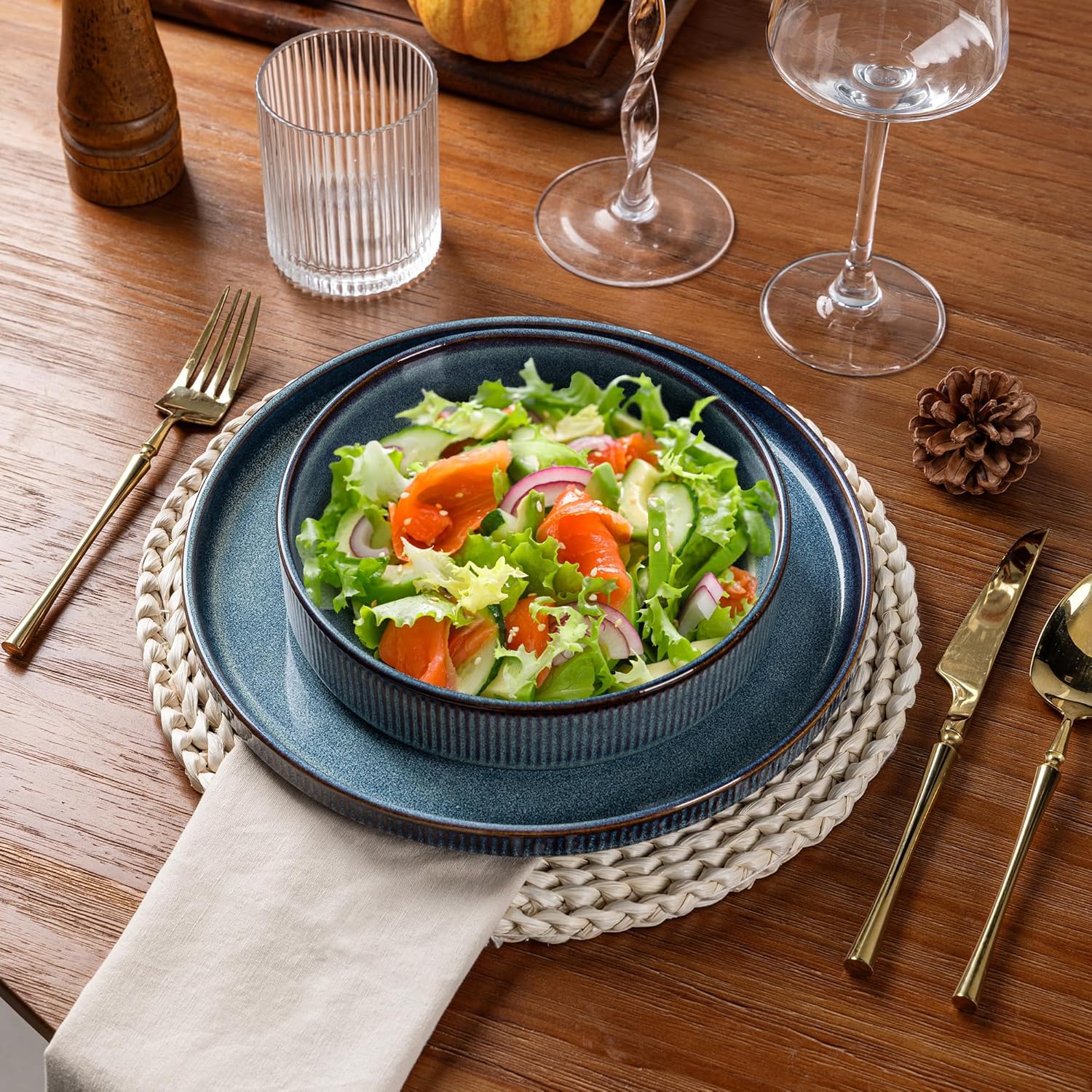 - Healthy, Lead-Free & Chip-Resistant: Crafted from premium, double-fired ceramic, this dinnerware is lead-free and cadmium-free, ensuring no harmful chemicals leach into your food. The durable stoneware construction makes it exceptionally chip-resistant and built for long-lasting daily use.