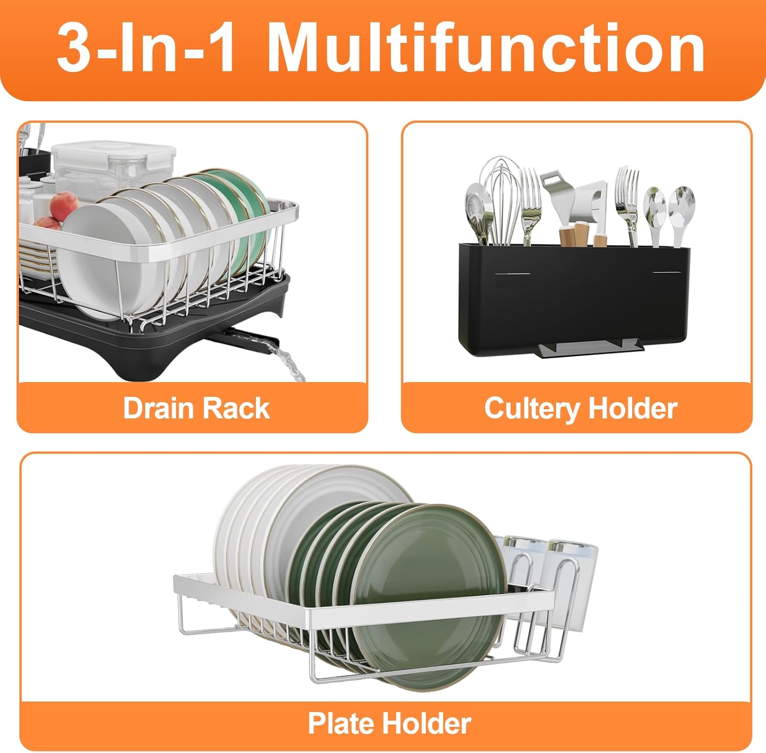 - Special Feature : Space Saving, Automatic Drainage, Removable Cutlery Basket, Rust Resistant, 304 Stainless Steel Dish Holder Space Saving, Automatic Drainage, Removable Cutlery Basket, Rust Resistant, 304 Stainless Steel Dish Holder