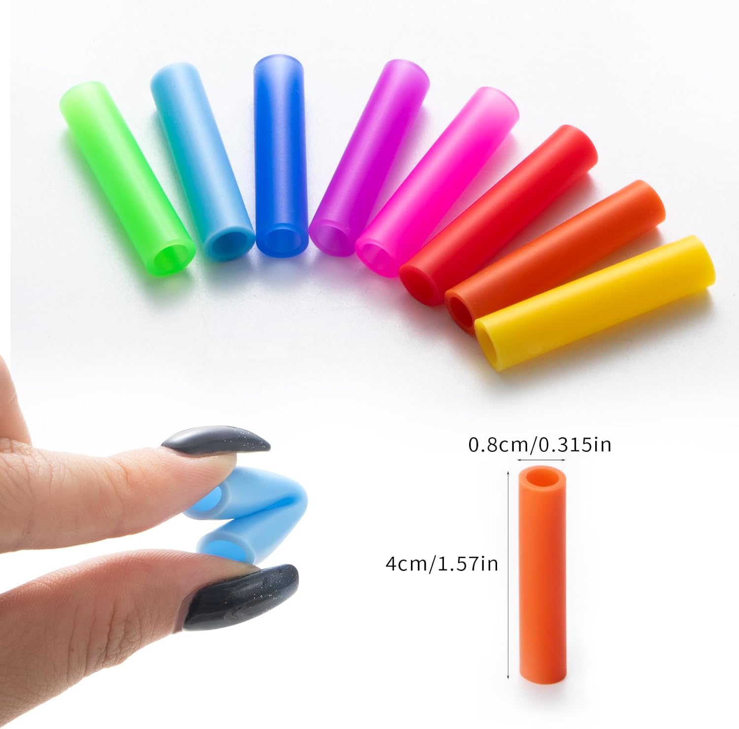 - 【16 SOFT FOOD GRADE SILICONE TIPS - 8 COLORS】Different colored silicon sleeves help protect your lips from burrning/freezing with hot/cold beverages and can tell apart everyone's drinks during family gatherings. For kids who love to bite down on straws, these tips will make the straw comfortable on our teeth.