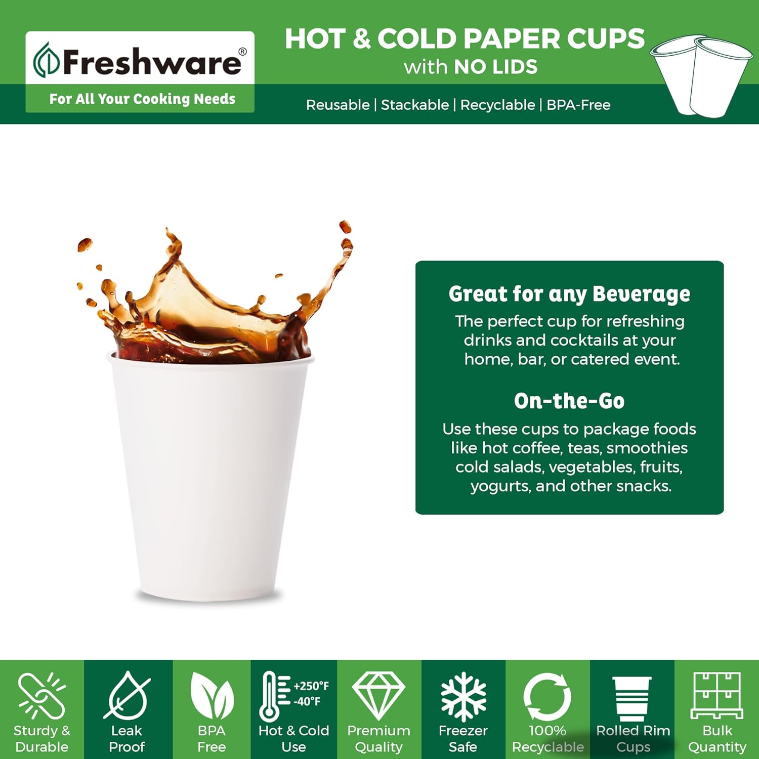 Freshware Coffee Cups 8 oz [300 Pack] Disposable Paper Cups for Hot or Iced Coffee Cup, Slushie Cup, Milkshakes, Smoothies, and Tea