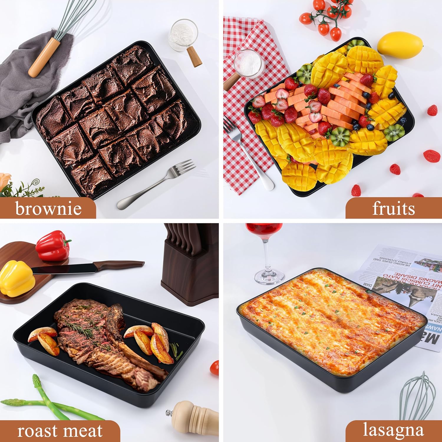 - Versatile Use: bread baking pan measures 12⅓ x 9¾ x 2 Inch, large and deep enough to meet your versatile baking needs, 2 inch deep side accommodates larger capacities and is not easy to spill, ideal for baking cake, brownie, casseroles, lasagna, bread, roasting chicken, fish, veggies, serving fruits, snacks for birthday, picnic or various celebrations occasions