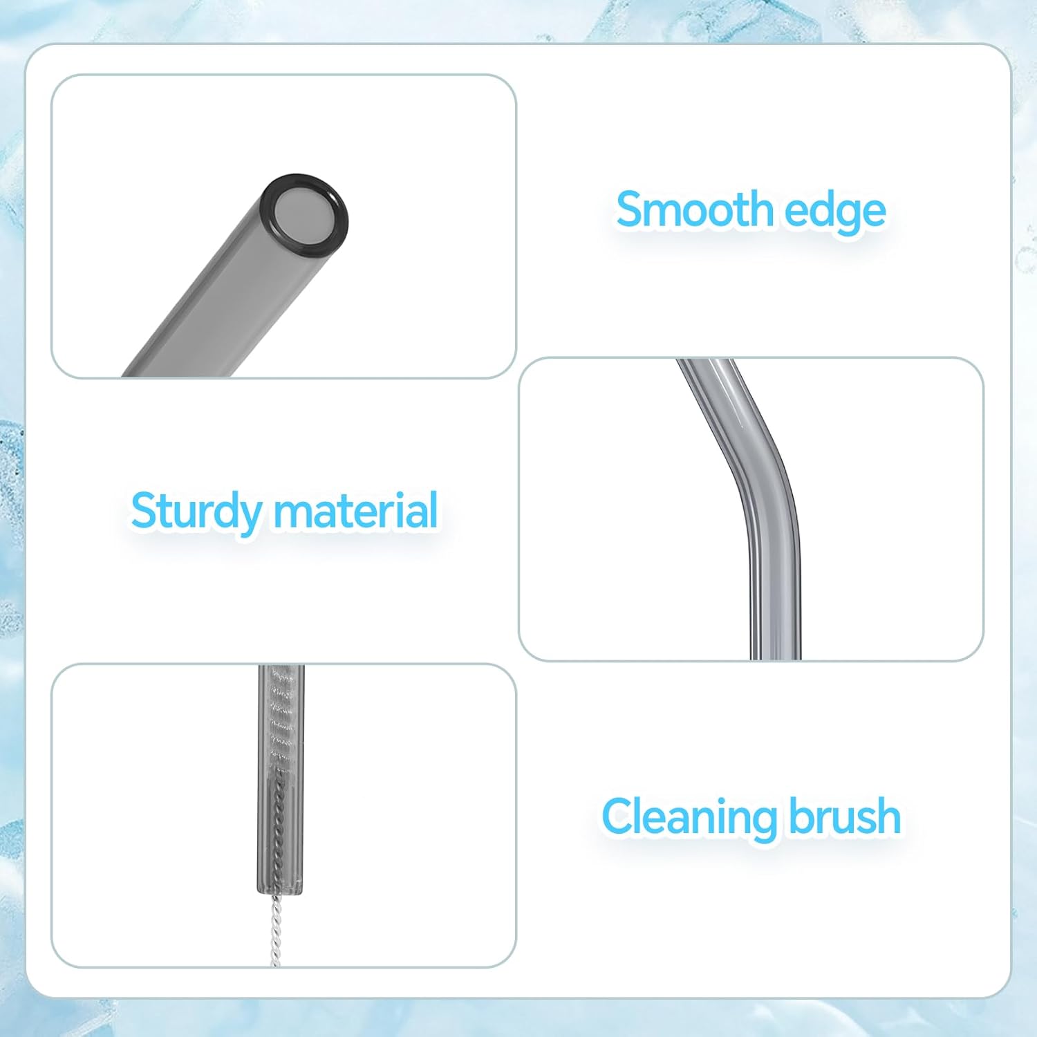 12 Pcs Reusable Glass Straws 8"x 8 mm Bent Glass Drinking Straws with Cleaning Brush for Tea, Smoothies, Milkshakes, Juices,Beverages(smoky gray)