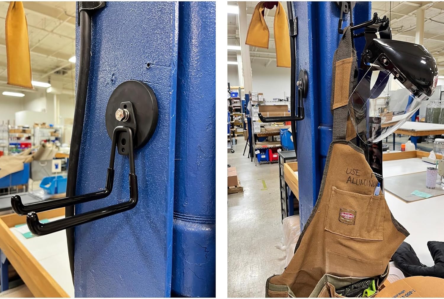 - 【Convenient Using】Forget drilling holes everywhere! Just pop this magnetic hook onto a steel surface (works best on thicknesses over 0.04"). Now you can neatly hang cables, drills, and tools. Move the hooks easily whenever you want.