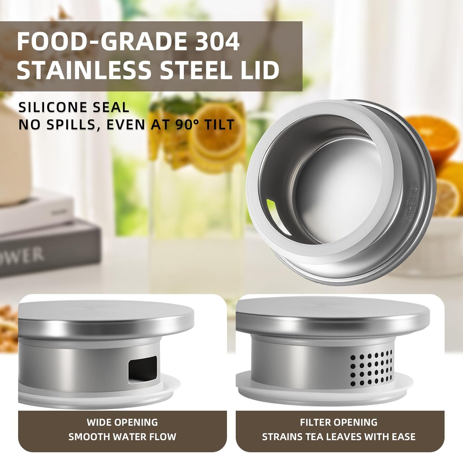 - Functional rust-proof stainless-steel lid: 304 stainless steel lid features 2-way outlets with large holes and small holes for filtration. Itβs quite multi-functional for family use. The food-grade rubber ring makes sure the lid is tight and does not fall off while pouring.