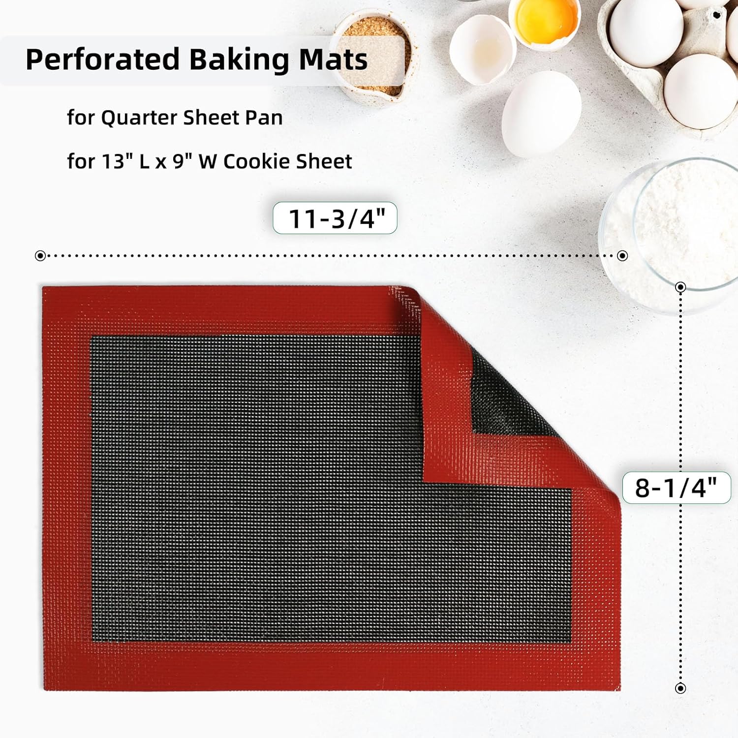 - ✅ 【PREMIUM PERFORATED BAKING MATS, SAFETY & WELLNESS】 Made from BPA-free, food-grade silicone with fiberglass mesh, this quarter mat delivers a safe, odorless, and toxin-free surface. It withstands up to 480°F, ensuring clean, healthy baking without fumes or chemical residue—ideal for families and everyday wellness.