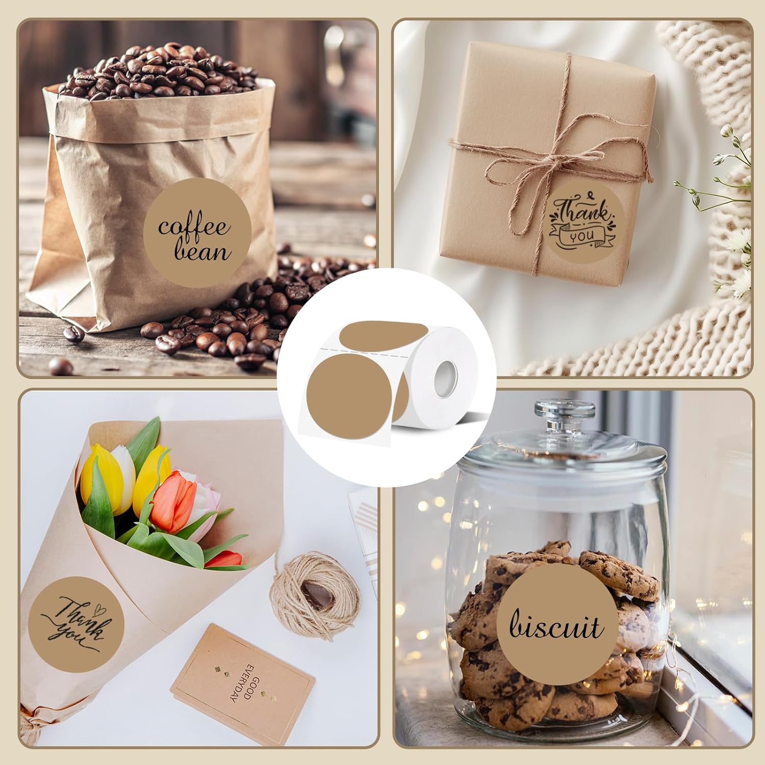 Thermal Label,3 Inch Brown Round Thermal Printer Sticker,Self-Adhesive Round Direct Thermal Labels,Thermal Stickers for DIY Logo Design,Name Tag (300 Labels/1 Roll)