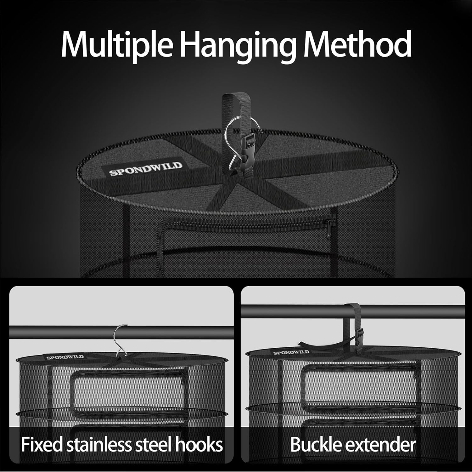- Efficient drying: The open, breathable mesh structure of the hanging herb drying rack facilitates maximum air circulation, ensures rapid drying of the herb。The top of the herb drying rack hanging mesh is equipped with an adjustable telescopic buckle and a fixed sturdy hook, which can be hung in a variety of ways for you to choose.