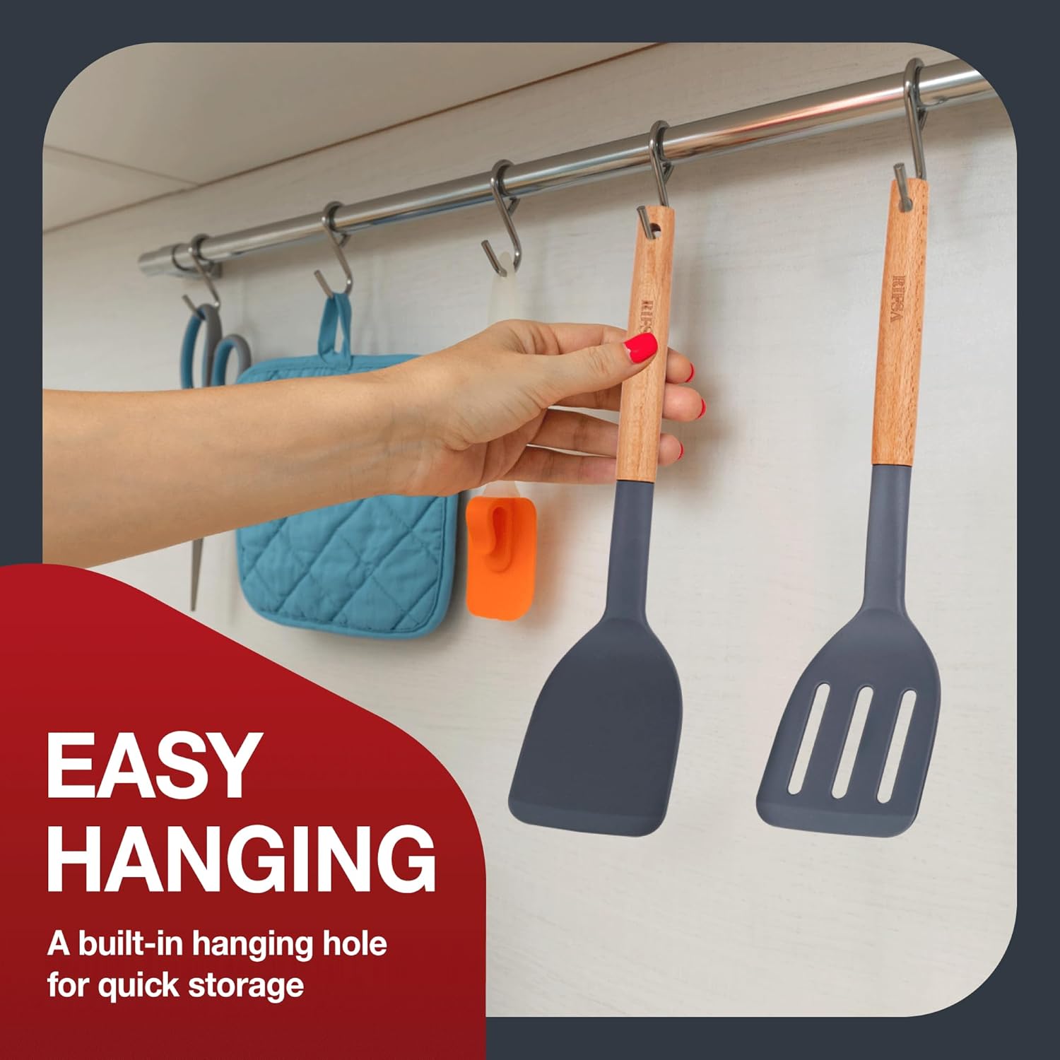- THOUGHTFUL AND SAFE DESIGN: The natural wooden handles of turner spatula won’t rust or break like metal utensils, so they last longer. Plus, they don’t get hot while cooking, keeping your hands safe from burns and making them comfortable to hold during long cooking sessions.